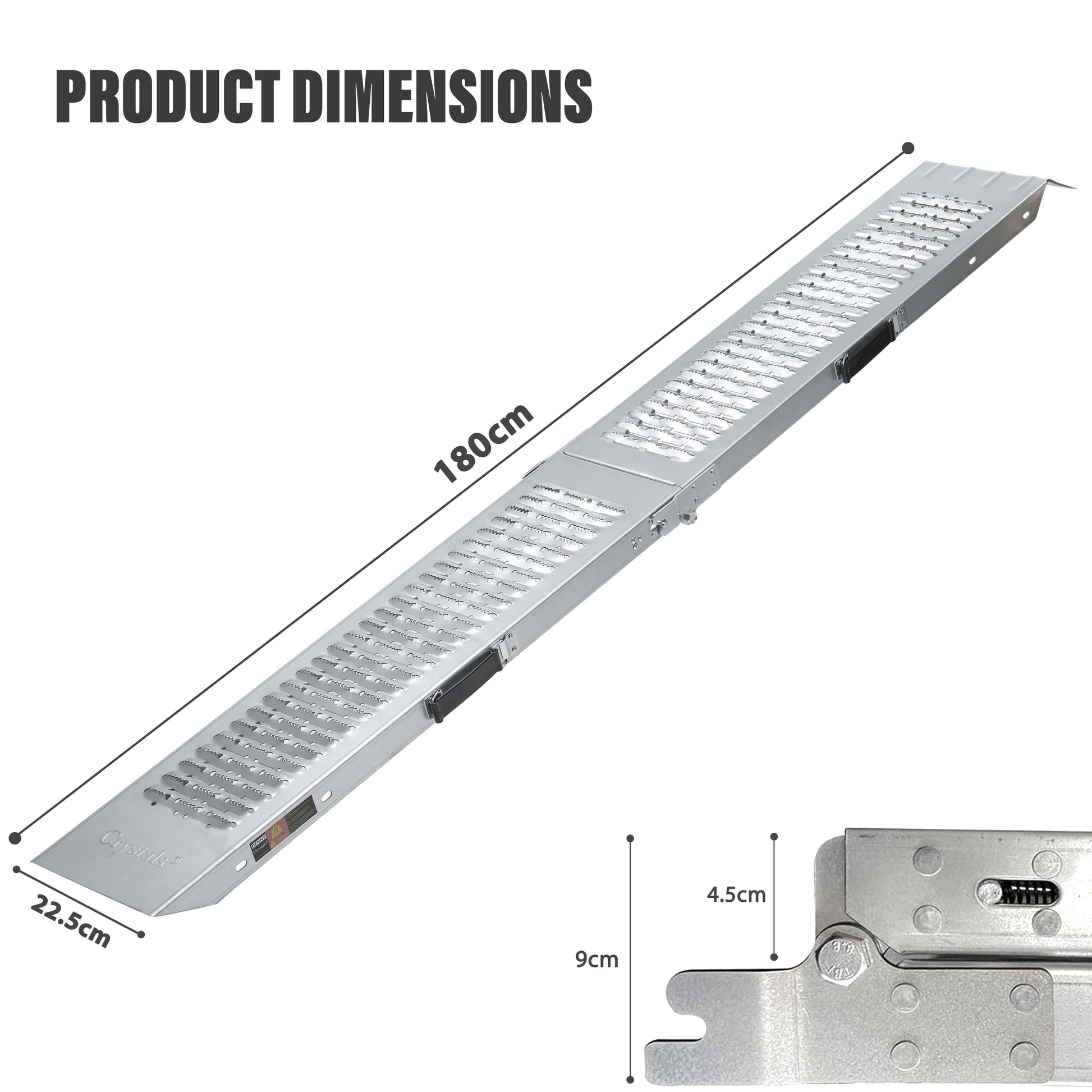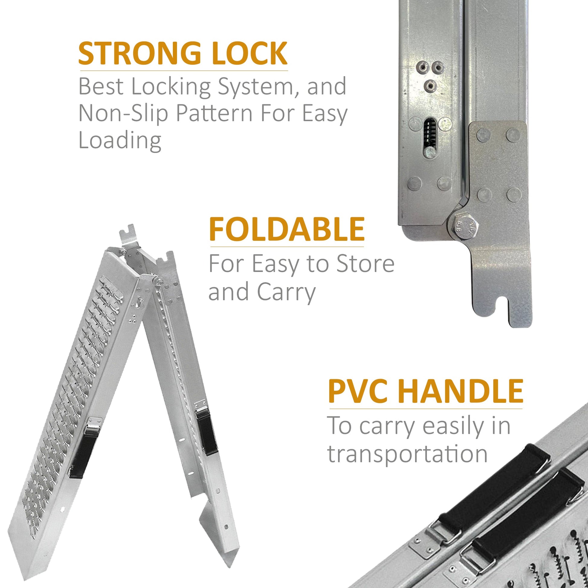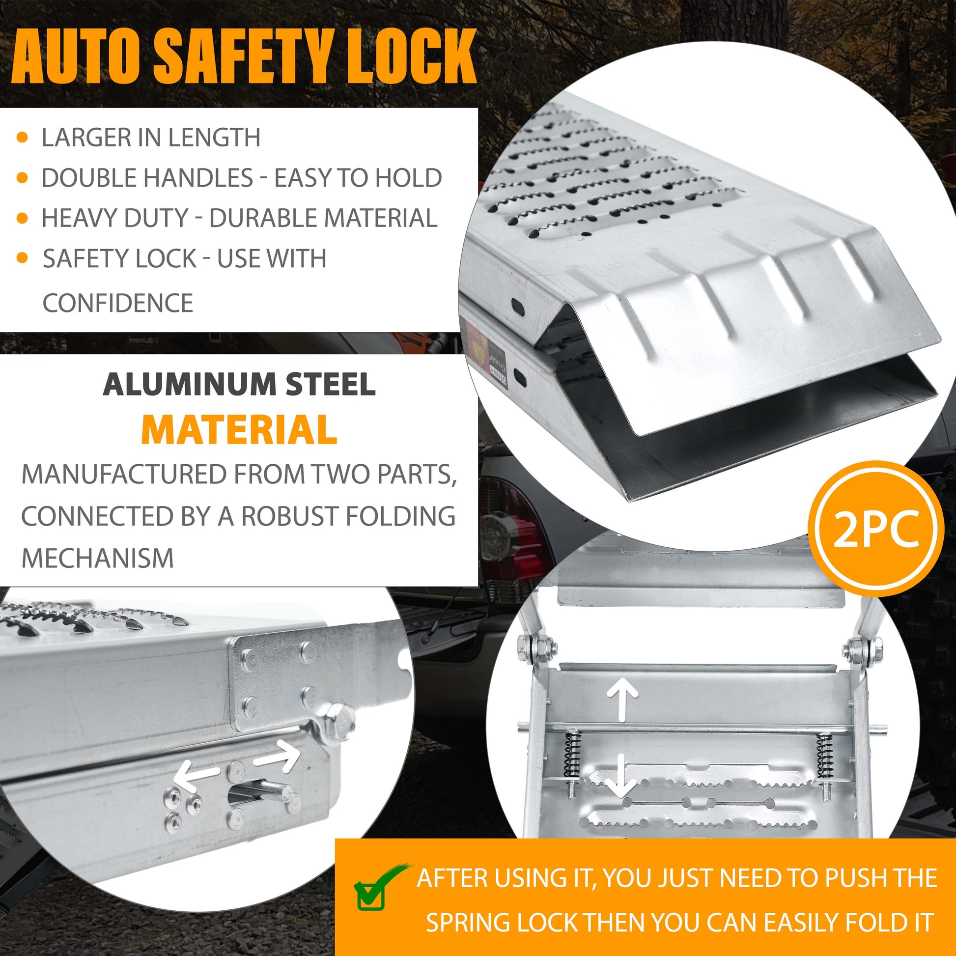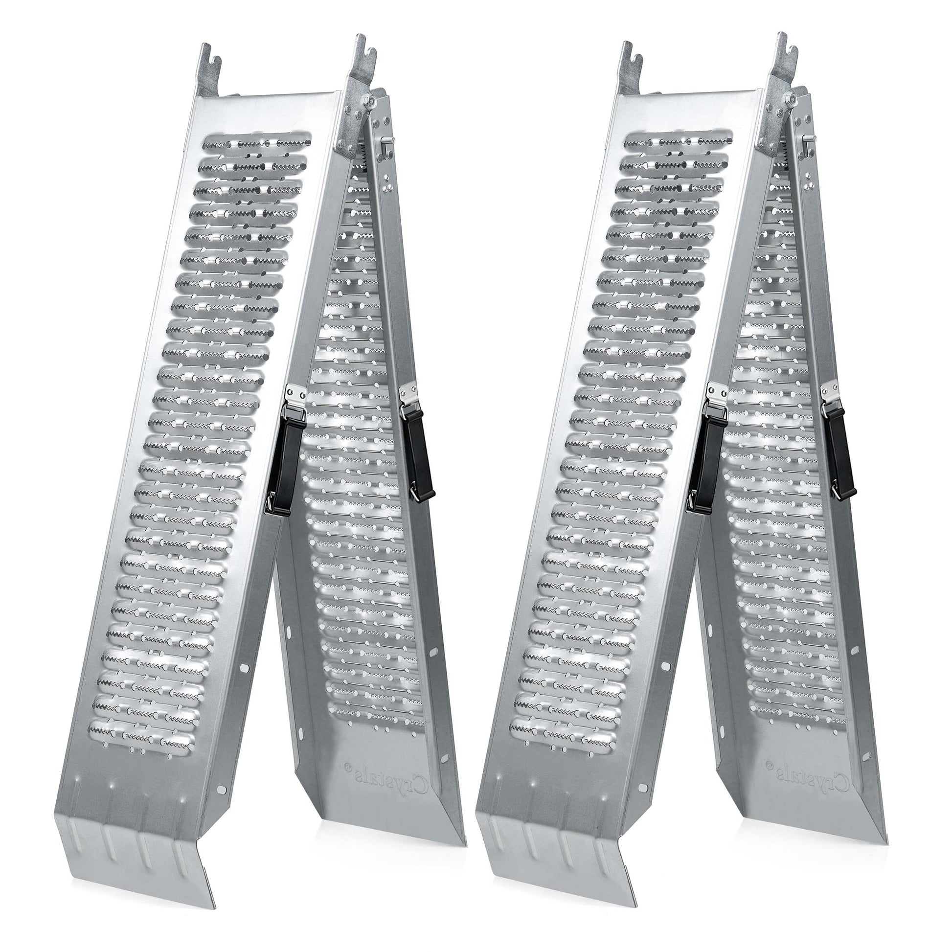 - Set of 2 Pcs Folding loading ramps are made of galvanized aluminium steel and treated against corrosion Support up to 400kg or 200kg per ramp