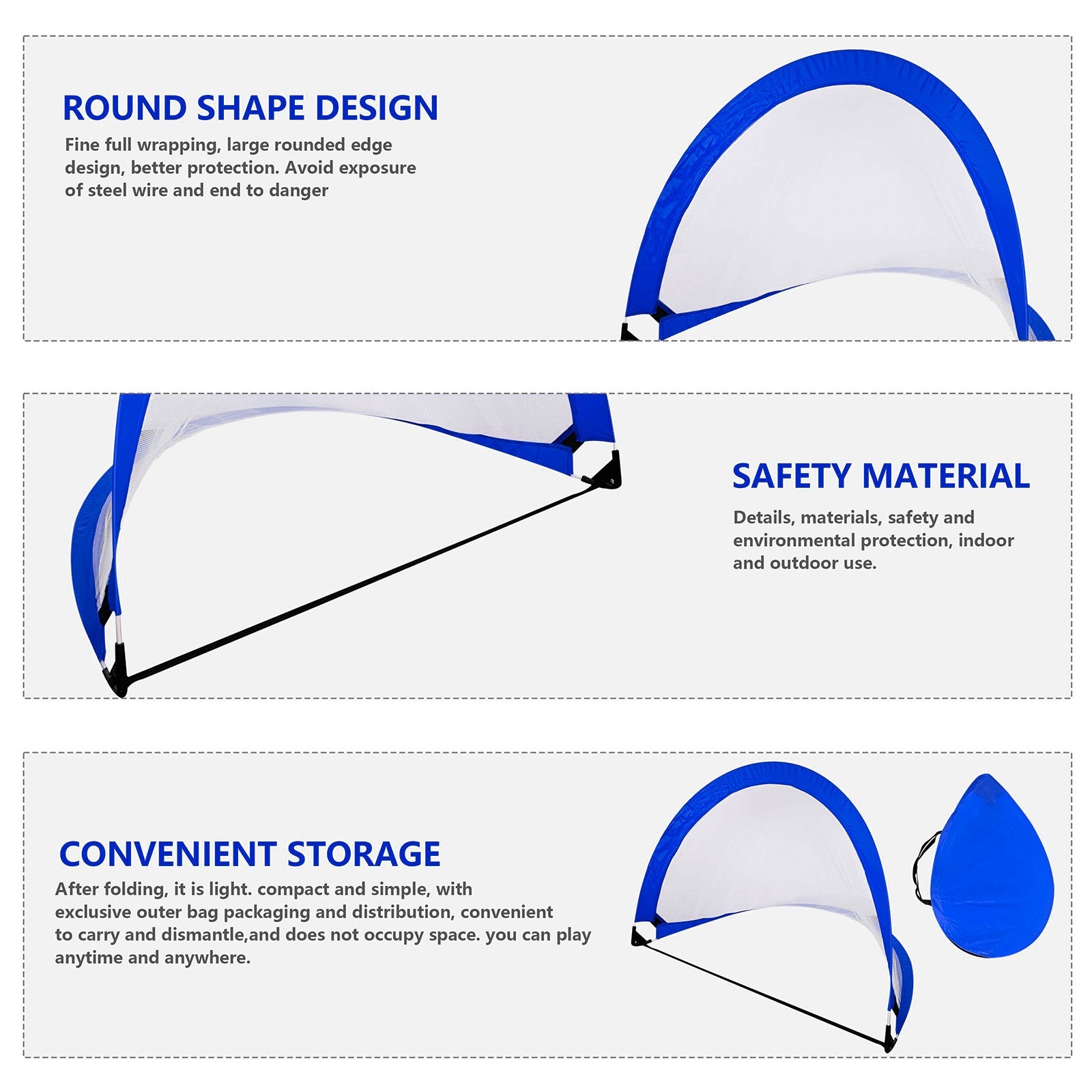 - Goals feature an innovative pop-up design to allow you to assemble the goalposts in seconds.