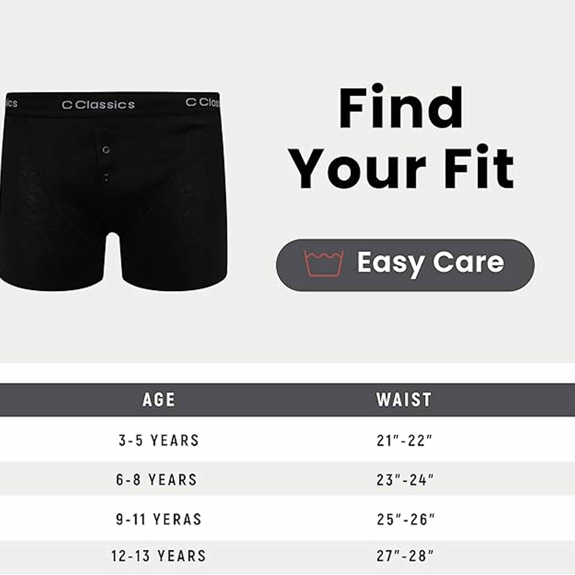 Benefits: The button fly offers ease of use, making these boxers a practical choice for children. The classic design ensures they are suitable for any occasion, whether it’s a day at school or weekend playtime.