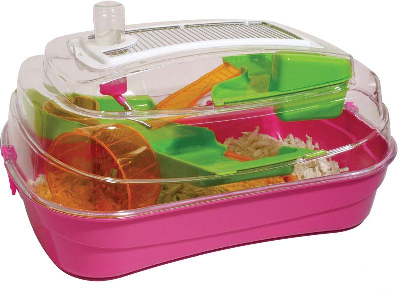 Our Abode for dwarf hamsters and mice is a high quality, plastic home with narrow, powder-coated bars in the roof for ventilation making it completely escape proof and even suitable as a breeding cage. It's stylishly appointed with a solid exercise wheel, food dish, sleeping area (which could also be used for sand baths) and our easy to use drop in water bottle. The smooth, solid base is deep enough for an extra deep layer of litter for burrowing. And as all accessories are held in the top of the home it makes the base really quick and easy to clean. Presented in our classic blue and orange colourway.