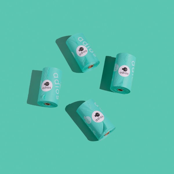 Adios dog poo bags are plant-based, compostable and extra thick. Certified HOME compostable Made from natural materials Extra thick & easy to open No microplastics 15 bags to a roll Mint colour