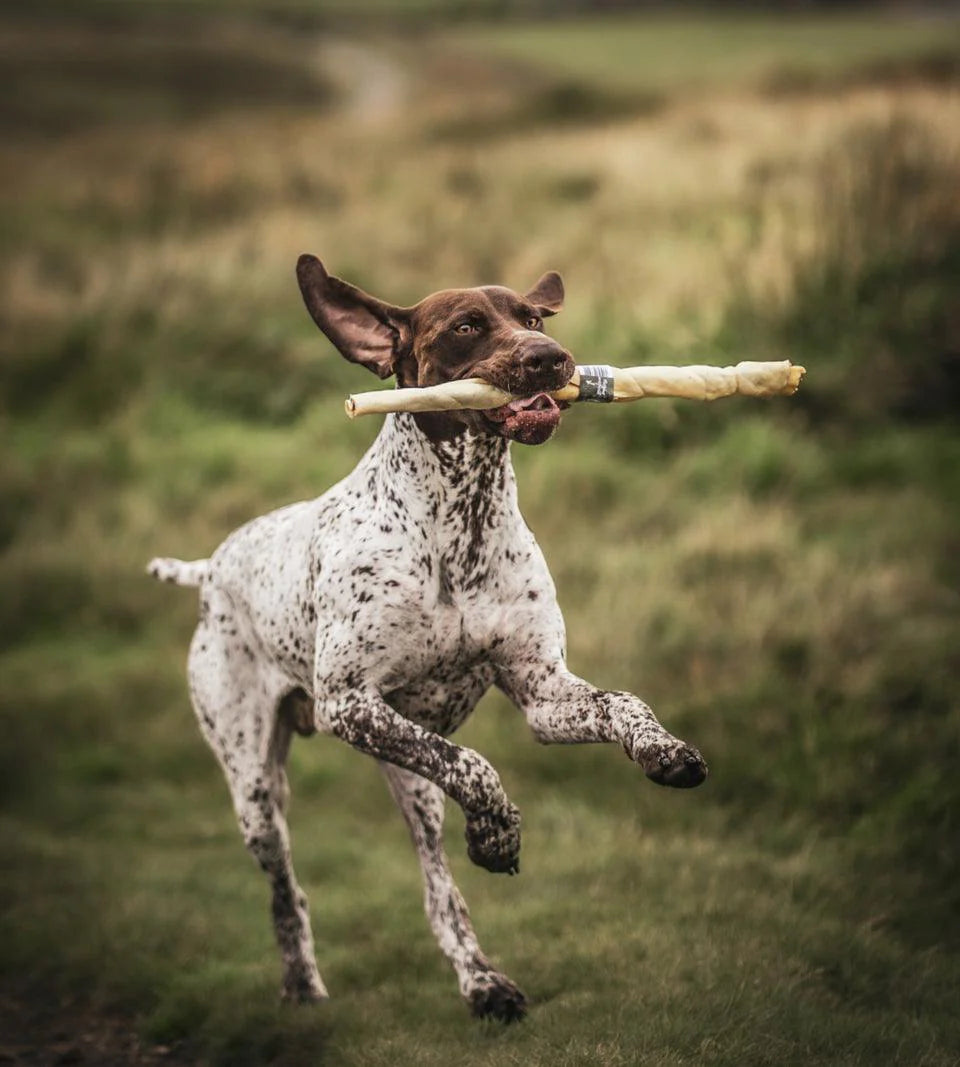 Many dogs (if not all) love a nice tough chew to enjoy for after a long walk, or after play time for some well-deserved chewing time. Chewing stimulates their brain and releases endorphins - the feel good hormones - so a chewing dog is a happy dog! Due to the giant size and tougher consistency of these Giant Bully Rolls, these are great for keeping them occupied for a longer period of time while also keeping their jaws strong. Upon chewing, the treat breaks down and actually aids the removal of tartar from their teeth, keeping them clean! These Giant Bully Rolls are a great way to include some essential protein into your dog's diet, while keeping them entertained at the same time. *Approximately 40-50cm*