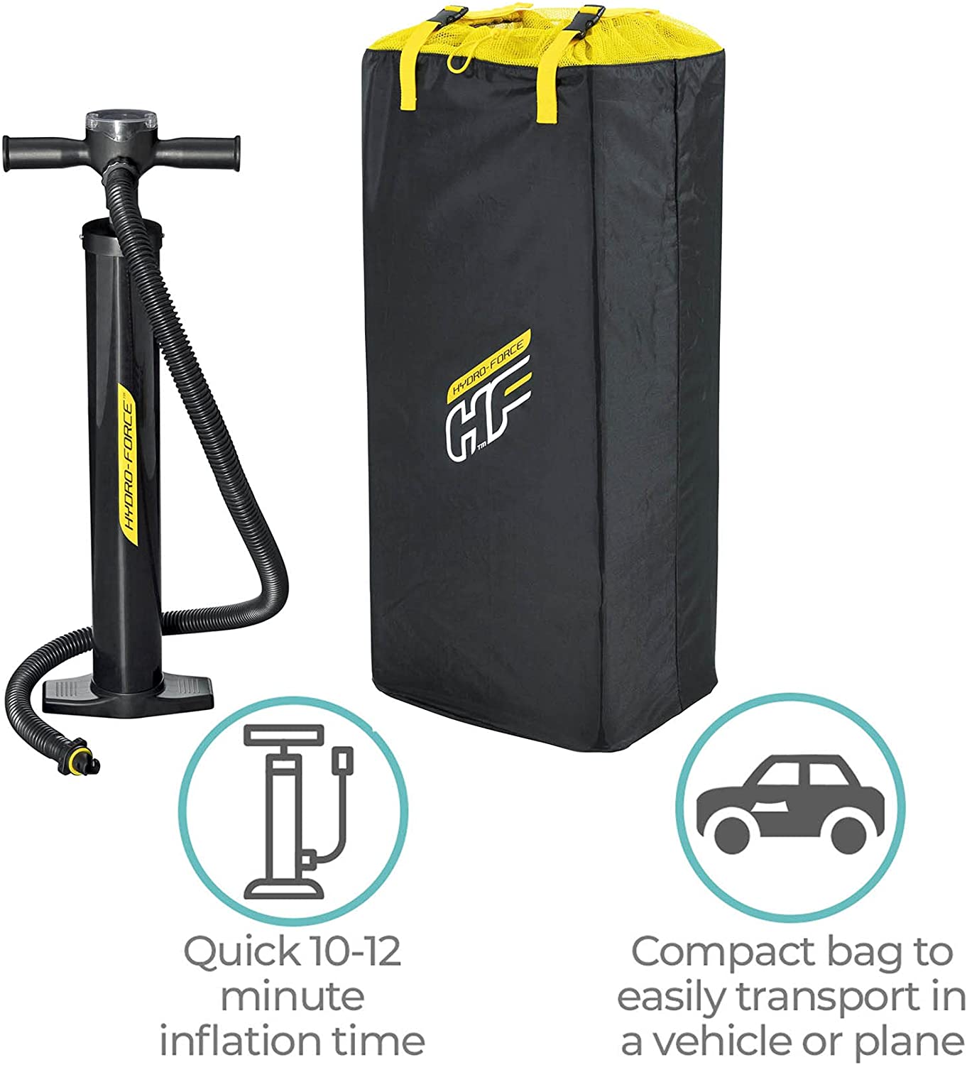 - QUICK INFLATION: Board can inflate in 10-12 minutes using the hand pump provided and deflate in less; Weight capacity: 130 kg (287 lbs)