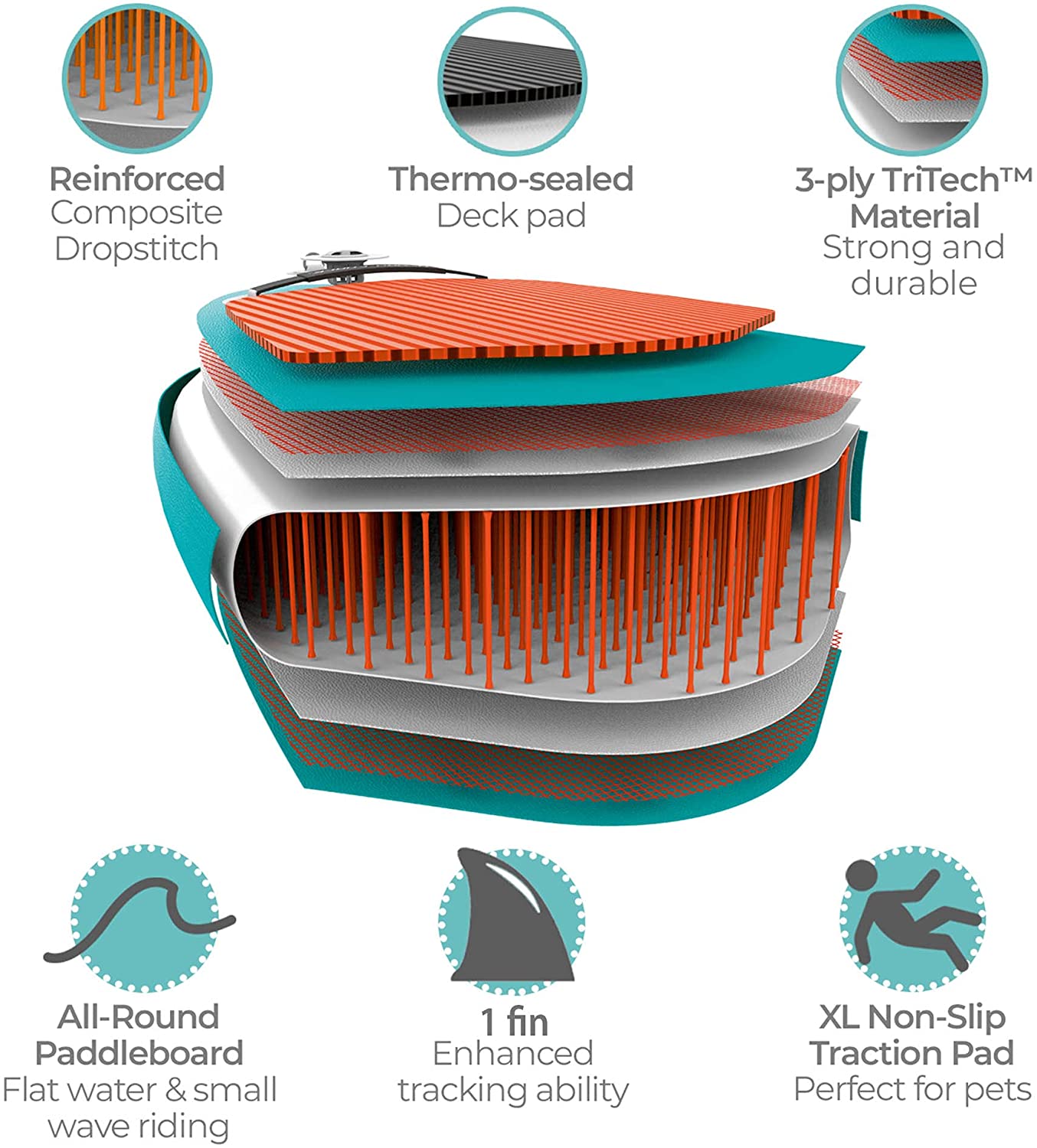 - NON SLIP PAD: Inflatable board with a non-slip traction pad provides a solid and stable foundation for comfort and steadiness