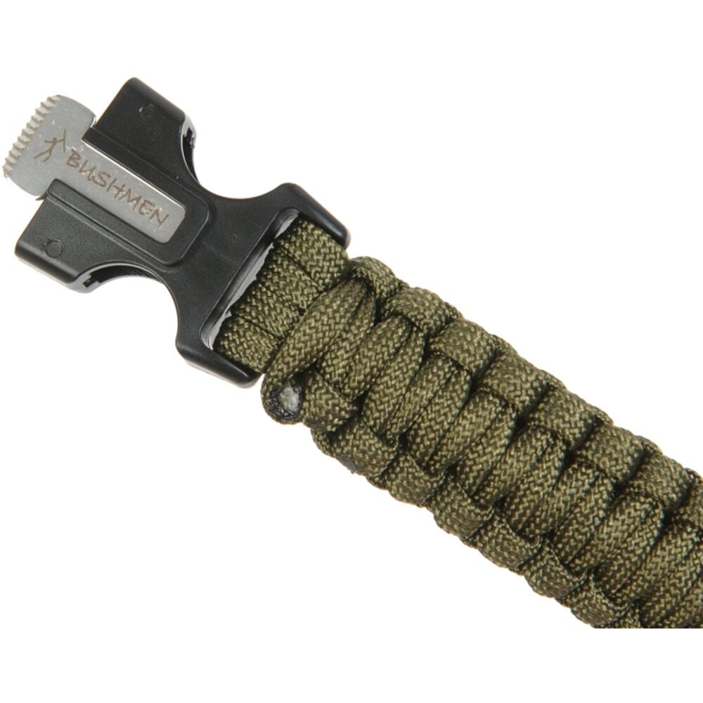 Buckle equipped with: firestarter, spark striker, and rescue whistle..