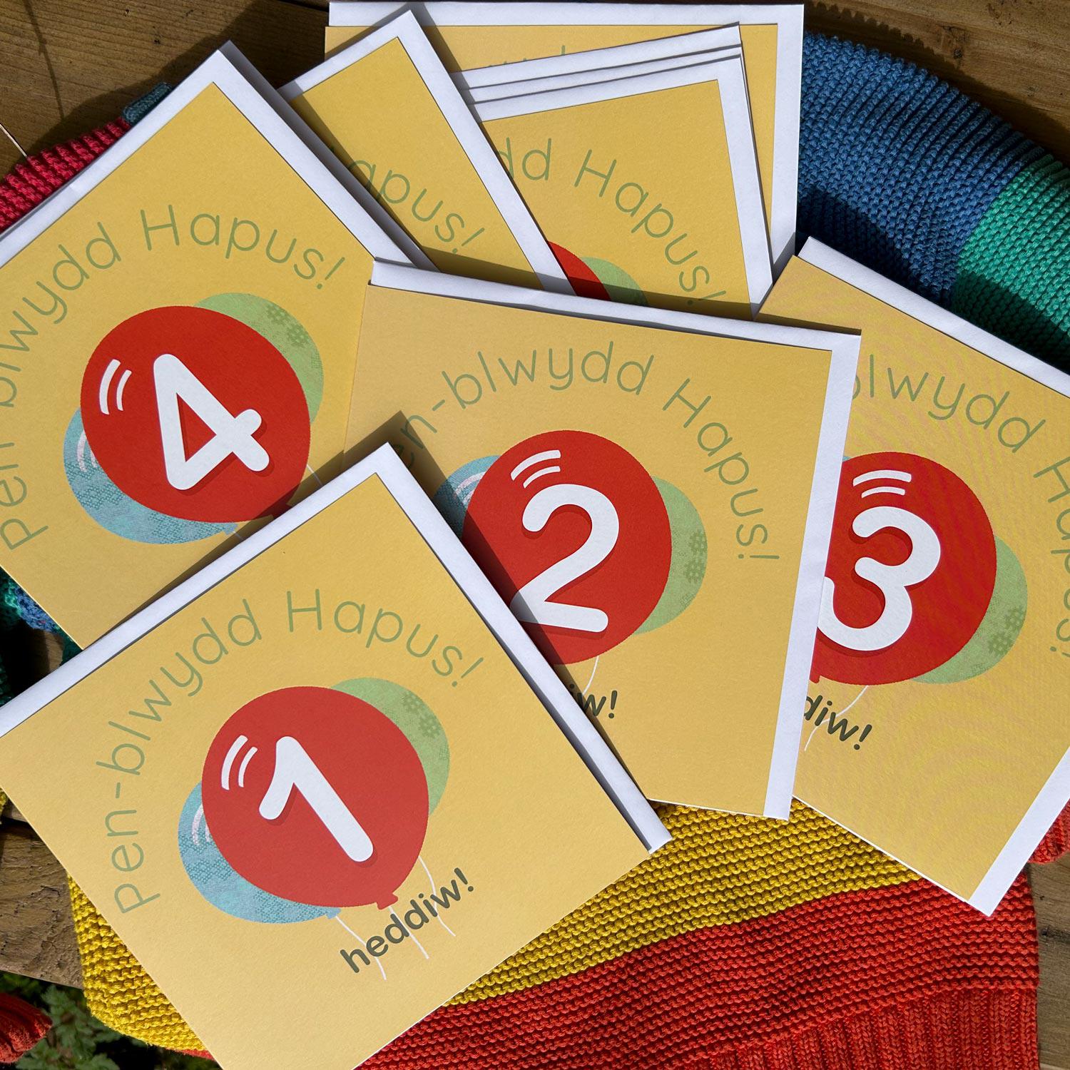 - 'Pen-blwydd Hapus' is the Welsh for 'Happy Birthday' together with their age and heddiw (today)