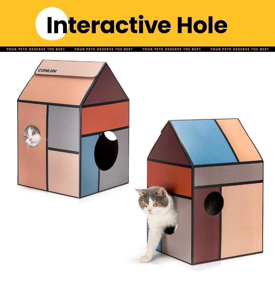 Unleash endless entertainment and transform your home into a playful paradise with the Conlun Cardboard Cat House.