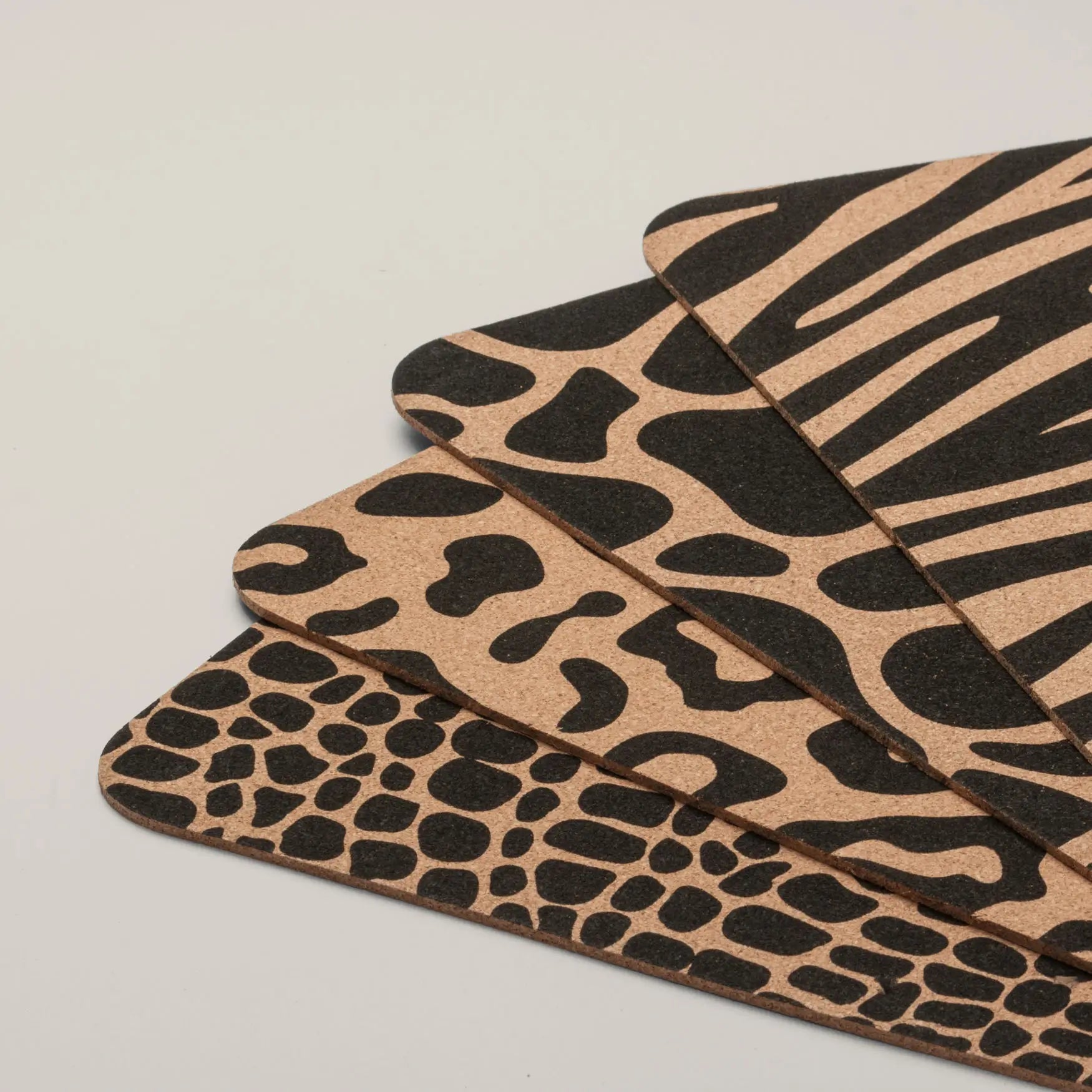 These natural cork placemats are highly durable and simple to clean, providing protection against heat and spills for tables. Pair with chinaware and other design fixtures to achieve a modern, calming aesthetic. These fabulous Jungle Design Table mats have a bold black print, there are 4 in the pack with 1 of each design in each pack.
