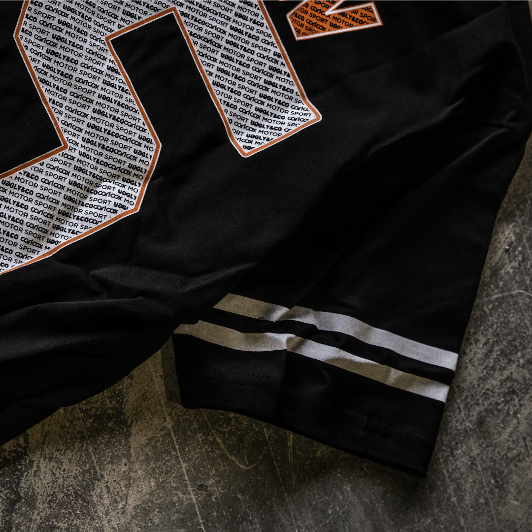 The standout feature of this year’s edition is the bold orange ‘25’ printed large across the back – a striking visual inspired by vintage American football jerseys. Look closer and you’ll see Carl Cox Motorsport and Uggly&Co subtly repeated within the '25', creating a unique textured effect that sets this tee apart from every previous edition.