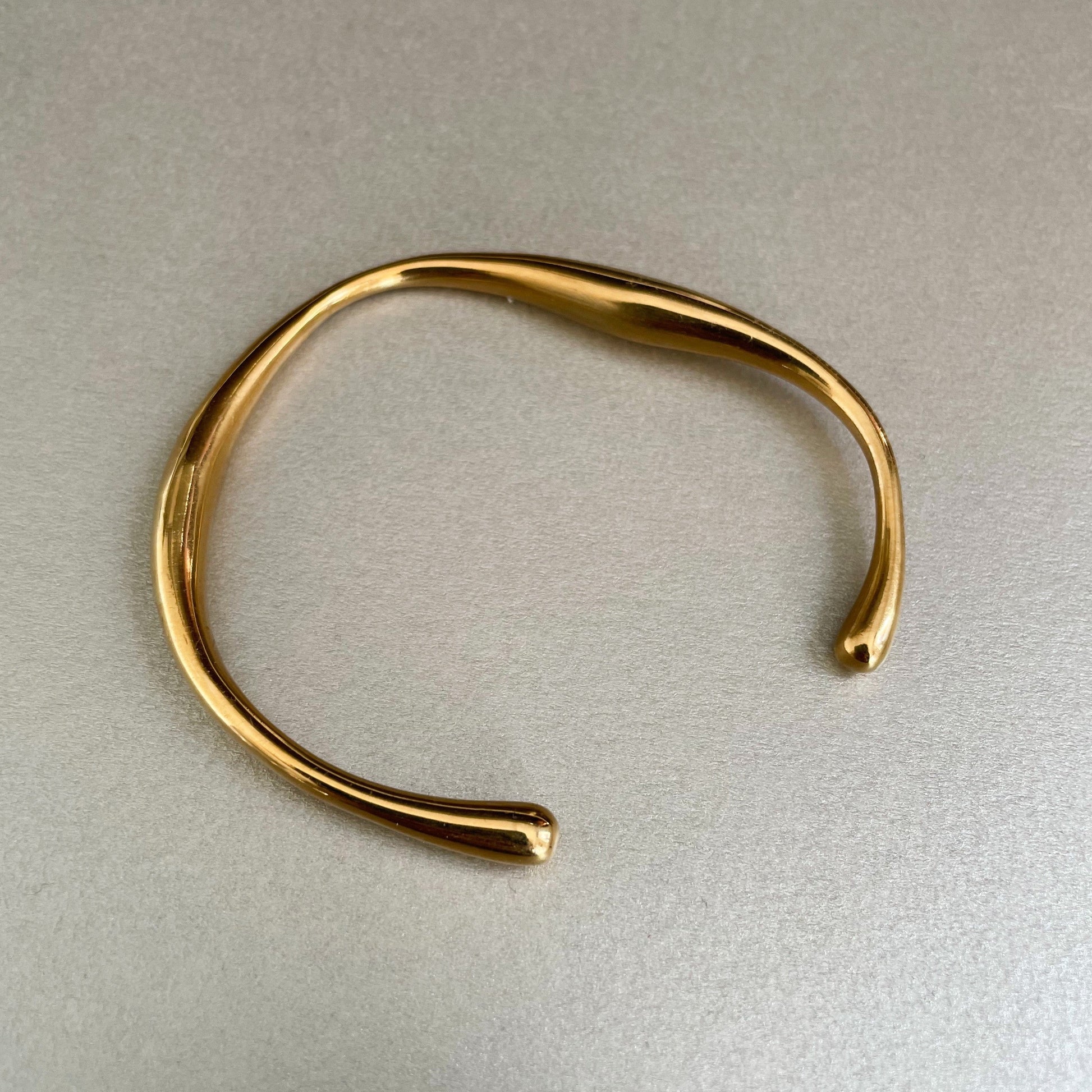 Elevate your style with this daring 18k gold plated bangle. Its irregular organically shaped design will make a bold addition to any look—for the fashion risk-taker who loves to make a statement.