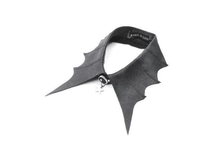 Complete your goth ensemble with the Dark in Love Belladonna Batwing Star Charm Collar – a striking statement piece inspired by nocturnal elegance. This structured collar features sculpted batwing points, a matte leather-look finish, and a central silver-tone ring with a dangling star charm.