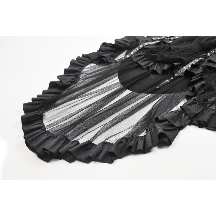 Dark in Love Belladonna Mesh Buckled Goth Skirt in Black