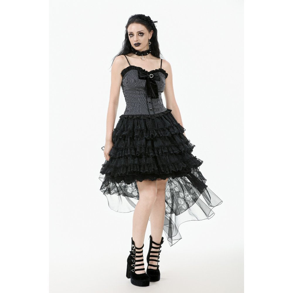 Dark in Love Belladonna Tiered Lace High-Low Goth Skirt in Black