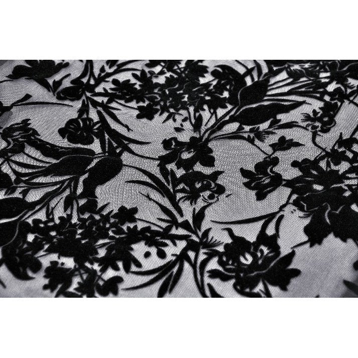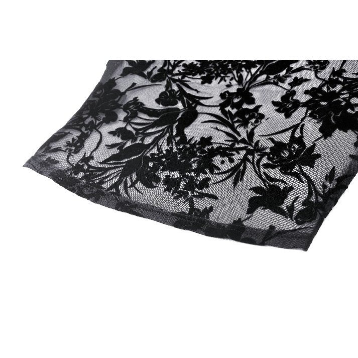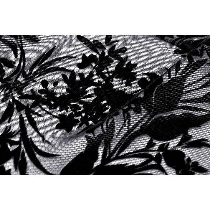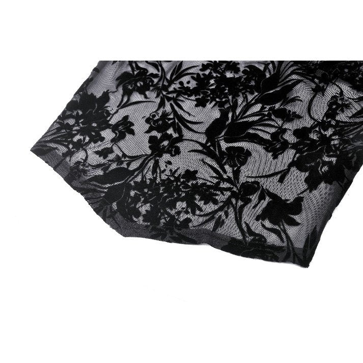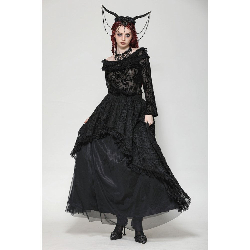 This Dark in Love Bluebell Goth Off-Shoulder Velvet Lace Top features an elegant and vintage-inspired design. The black gothic top includes long sleeves, ruffle details, and beautiful floral patterns, making it a perfect choice for those looking to add a touch of sophistication to their wardrobe.