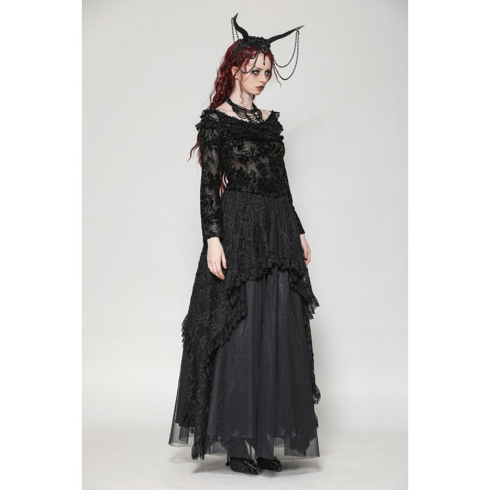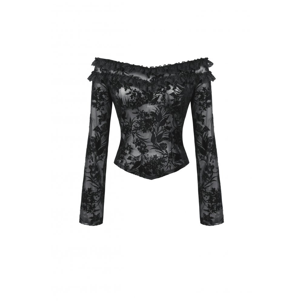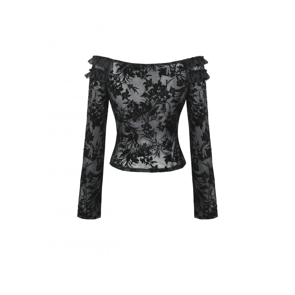 Dark in Love Bluebell Goth Off-Shoulder Velvet Lace Top