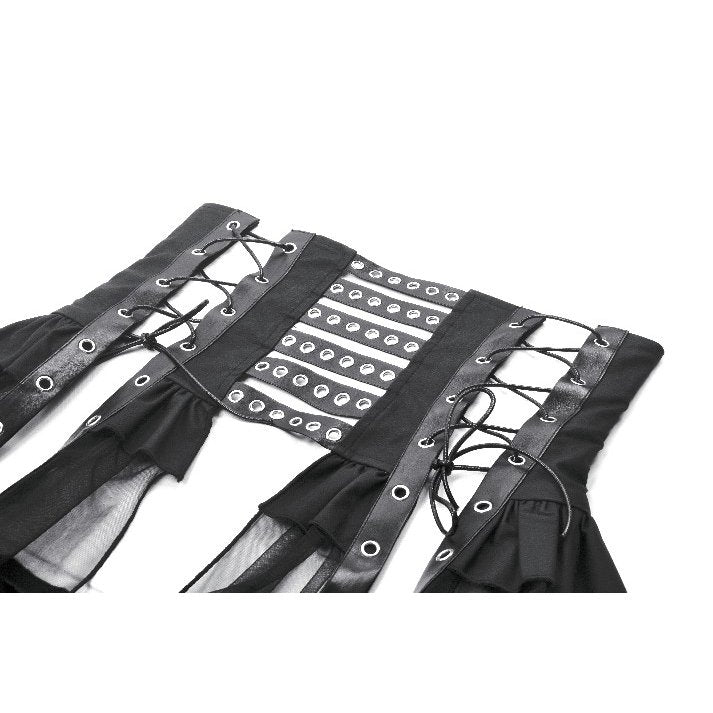 Dark in Love Draven Layered Mesh & Faux Leather Waist Cincher Skirt