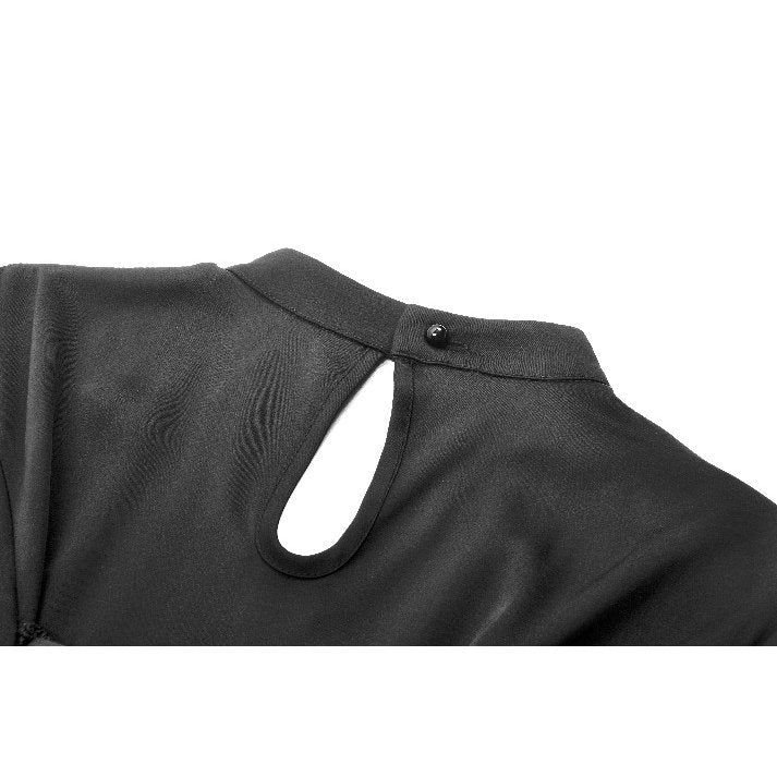 Step into timeless gothic romance with the Dark in Love Ebon Rose High-Low Mesh & Lace Goth Dress. This ethereal black gown features a fitted bodice with puff sleeves, ruffled neckline, and a sheer lace waist panel for a touch of dark allure.