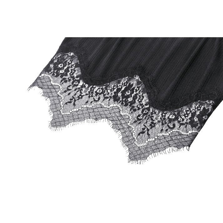 The Dark in Love Eliza Gothic Black Sexy Camisole is the perfect addition to your wardrobe. Featuring delicate lace detailing and a ribbed fabric texture, this gothic-inspired crop top and shorts set offers a stylish and edgy look. The minimalist design on the back completes the ensemble.