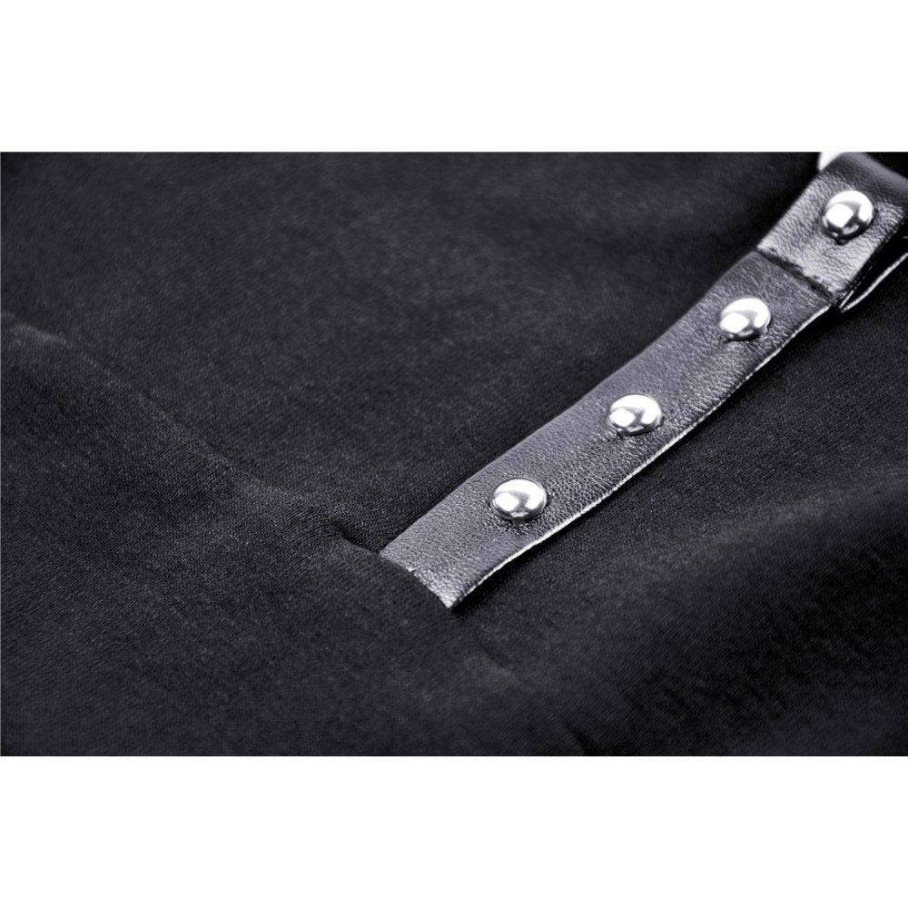 Dare to bare with unapologetic attitude in the Dark in Love Enyo Mesh Strap Goth Halter Top – Black. Designed for those who walk the line between provocative and powerful, this form-fitting halter top features a daring fishnet upper with faux leather straps and metal studs. The criss-cross neckline design and adjustable choker collar create a bold, dominatrix-inspired silhouette, while the cropped length adds a punk edge. Perfect for underground gigs, alt festivals, or a dark night out.