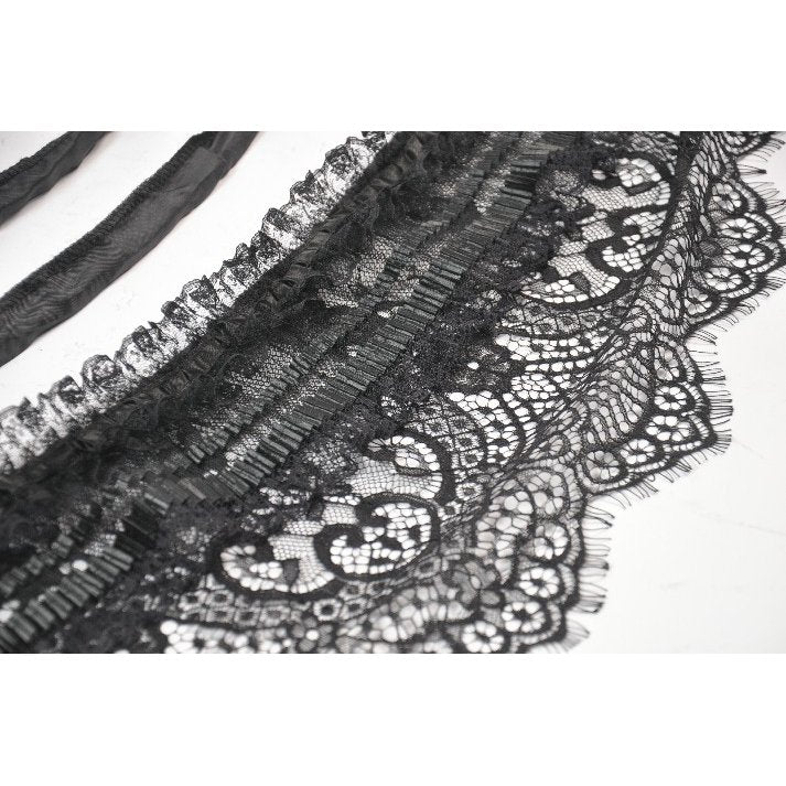 - Soft black lace trim along hemline for a hauntingly elegant effect