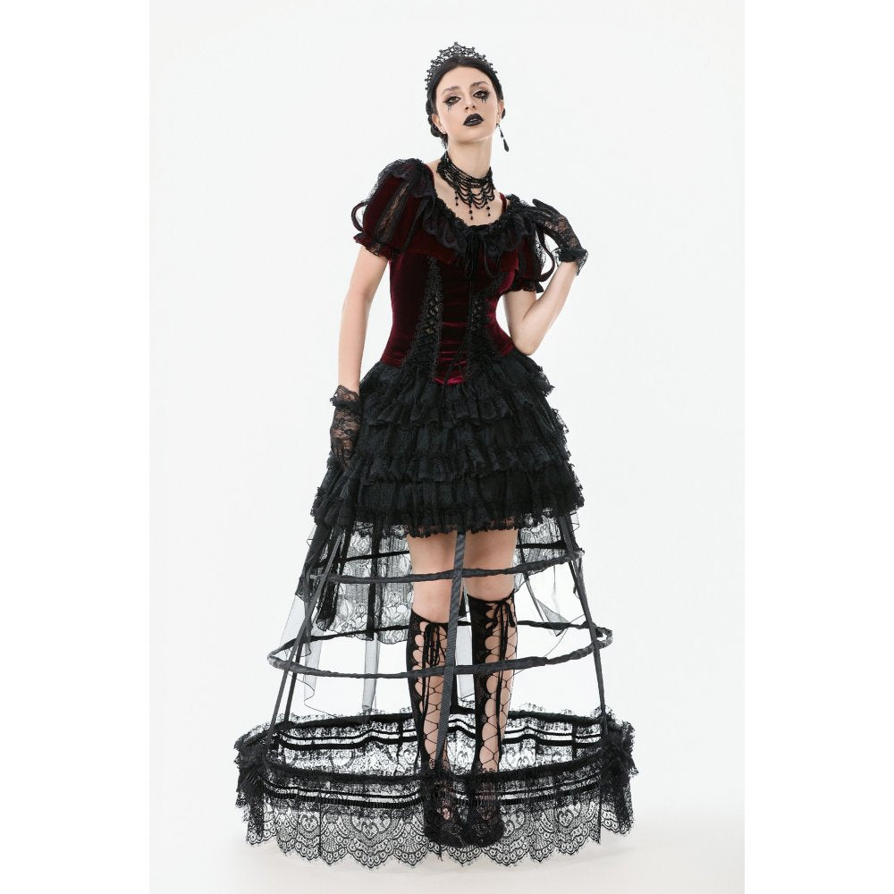Dark in Love Gothic Hoop Cage Skirt with Lace Trim in Black