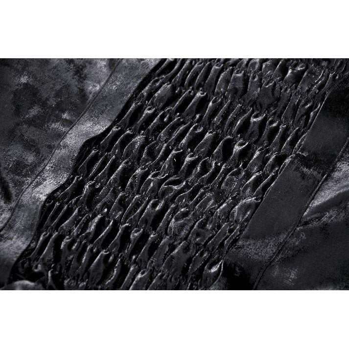 Introducing the Dark in Love Harriet Punk Shiny PU Leather Layered Dress. Featuring a unique combination of velvet, ruffles, and straps, this edgy dress will give you a bold and confident look. With a corset design, this dress will accentuate your figure and make you stand out in any crowd. Get ready to rock the punk fashion scene with this stylish and daring dress.