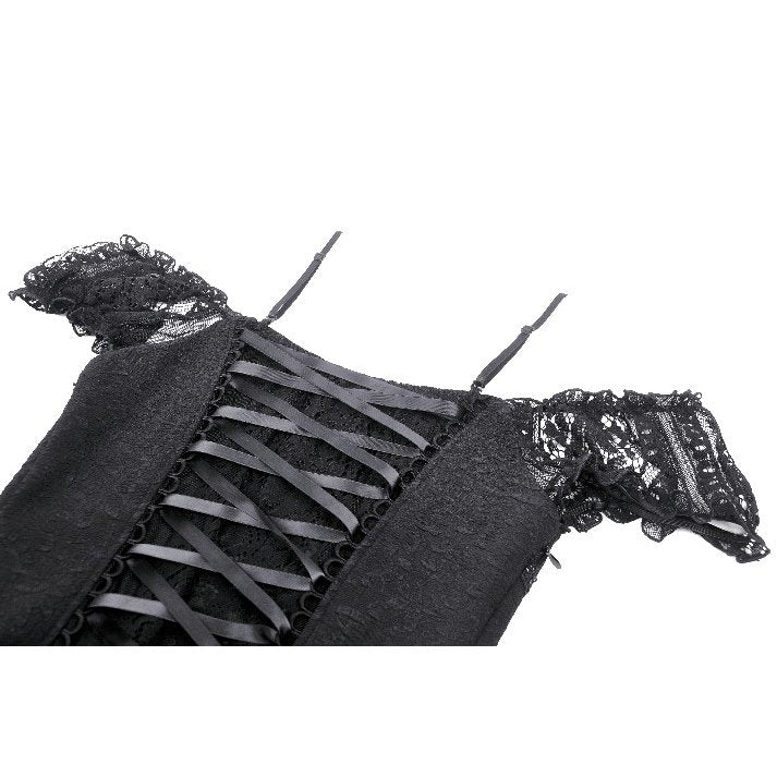 Dare to be different in this gorgeous gothic Kelilah Lace Hi-Low Dress by Dark in Love. Show off your unique style with off the shoulder sleeves and a lace up back. The hidden zip ensures a perfect fit while lace trim and features on the front add a touch of elegance. Not your ordinary dress!