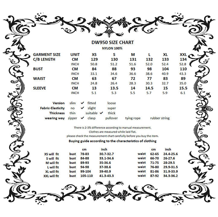 For the perfect fit please see Dark in Love’s size guide in the images.