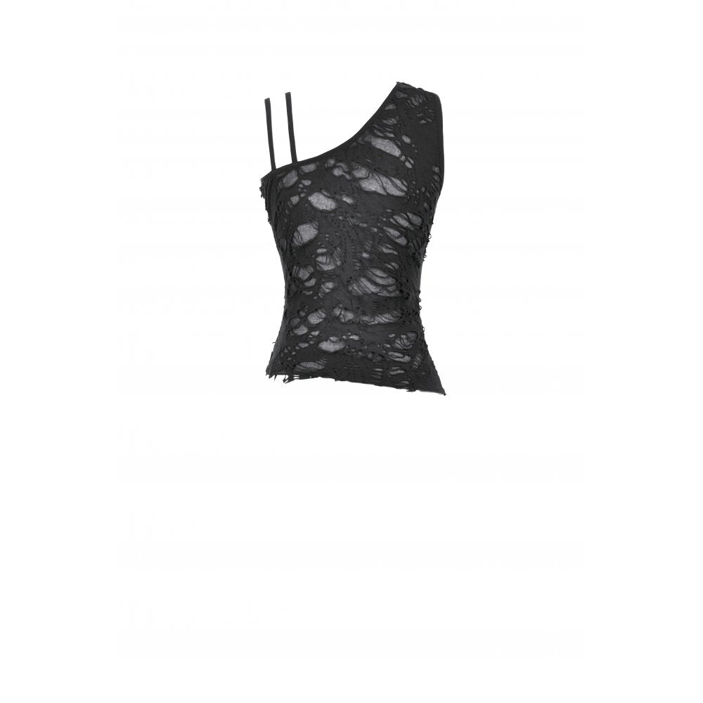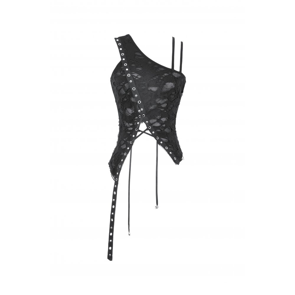 Dark in Love Morrigan One-Shoulder Lace Goth Top in Black