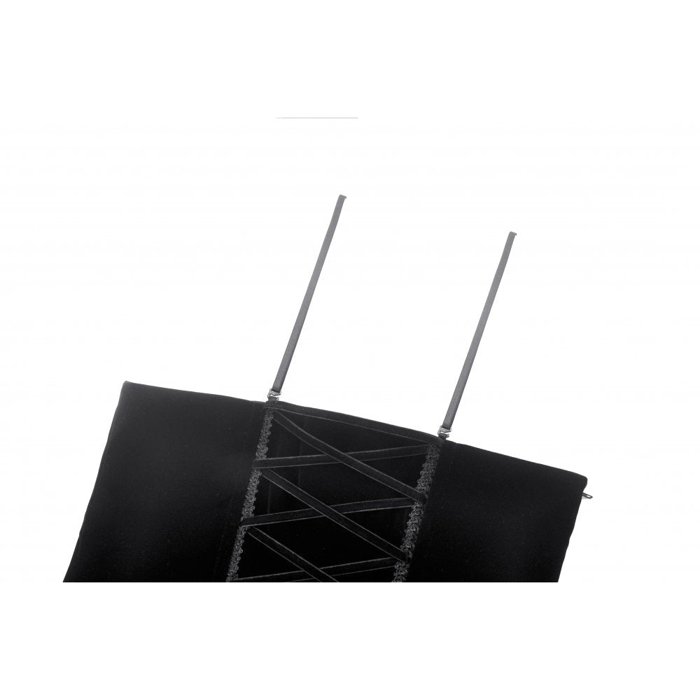 The sweetheart neckline is adorned with an ornate lace motif and central gothic charm, while adjustable straps ensure the perfect fit. This bodysuit pairs beautifully with skirts, trousers, or layered under sheer gowns for a striking alternative statement.