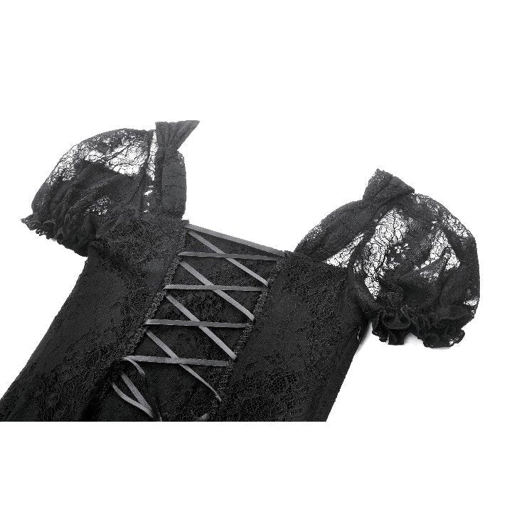 Indulge in the enchanting drama of the Dark in Love Morwenna Lace Gothic Maxi Dress – Black. This mesmerising piece combines regal gothic romance with sultry detailing for a look that is as bold as it is beautiful. The sweetheart velvet bodice features delicate embroidery and sheer lace overlays, framed by romantic puff sleeves and a high-low hemline that cascades into a floor-length lace train. A fitted inner mini dress adds structure while the transparent lace skirt flows ethereally with every step. Ideal for gothic events, dark weddings, or anyone embracing the witchy aesthetic.
