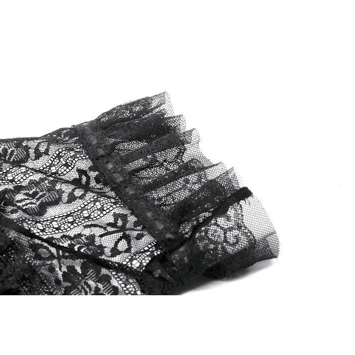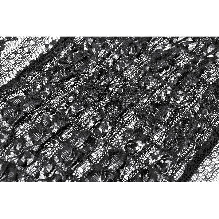 Embrace gothic royalty with the Dark in Love Ophelia Lace Off-Shoulder Gothic Bodysuit – Black. This exquisite bodysuit features a romantic off-shoulder neckline with delicate lace sleeves and front panelling, adorned with elegant embroidery and corset-style front detailing. The sheer mesh sleeves and layered lace textures add a hauntingly graceful touch, perfect for moonlit dances or grand alternative events. The fitted silhouette enhances your shape, while the soft stretch material ensures comfort and flexibility. Ideal for styling under skirts, corsets, or as a statement top with high-waisted trousers.