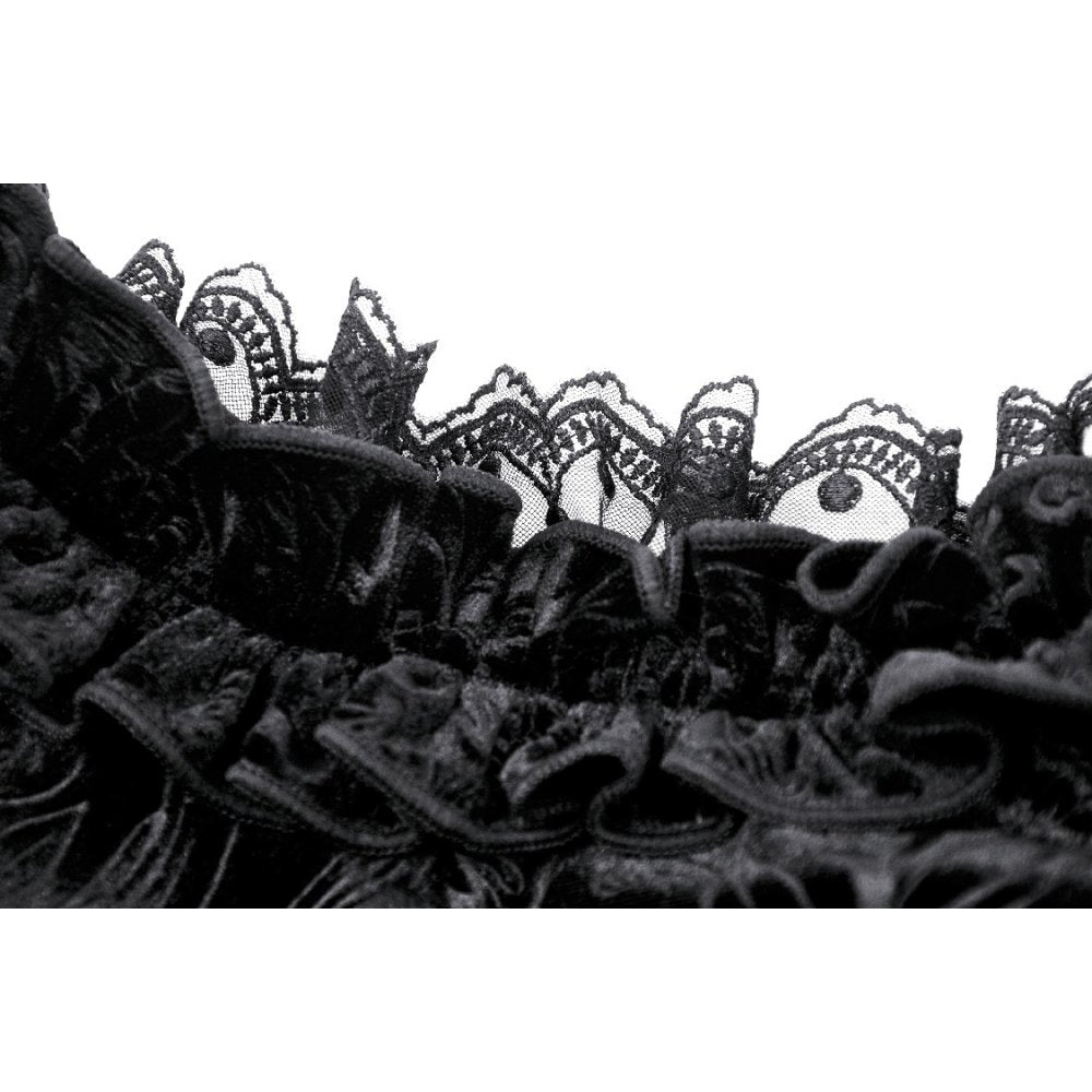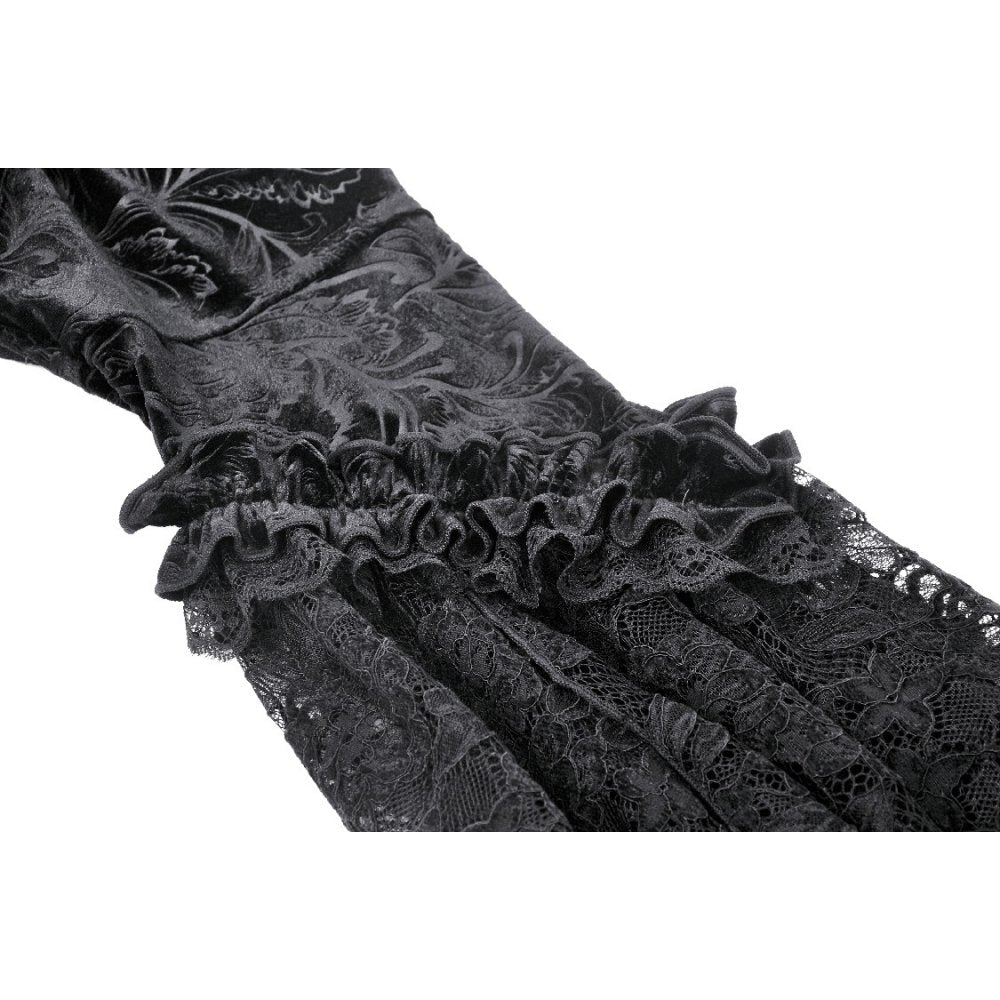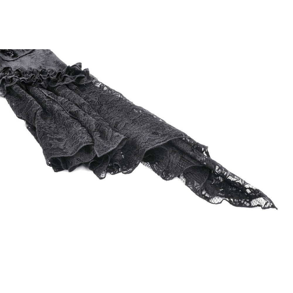 Unleash your dark side with the Dark In Love Raegan Bolero. This gothic-inspired piece features elegant lace and long bell sleeves, adding a touch of mystery and flair to any outfit.
