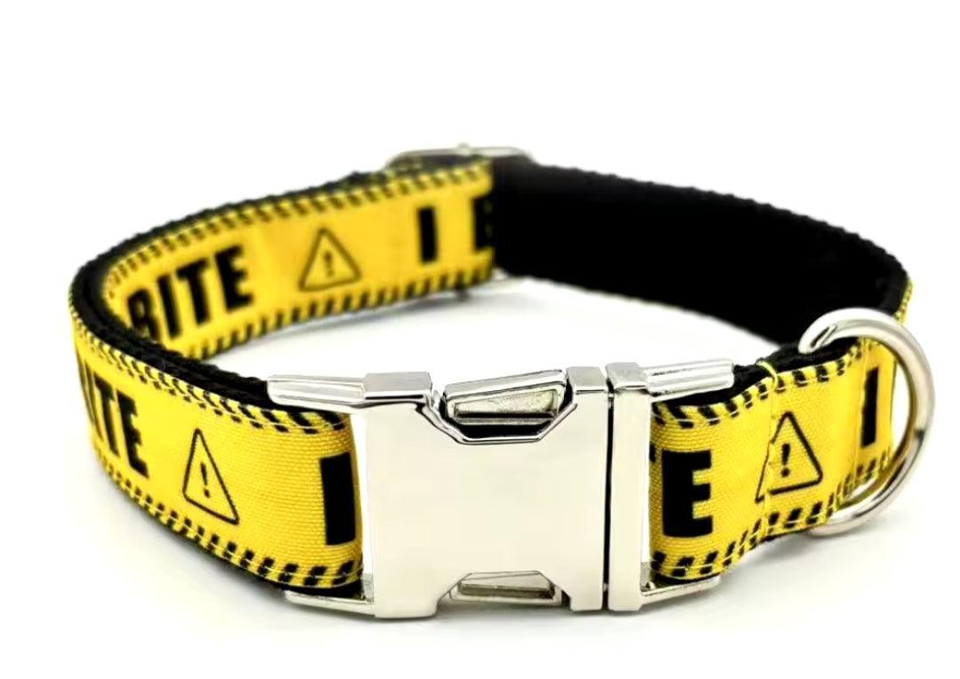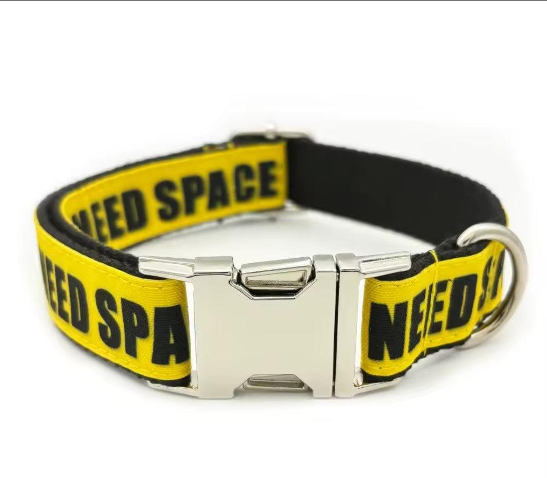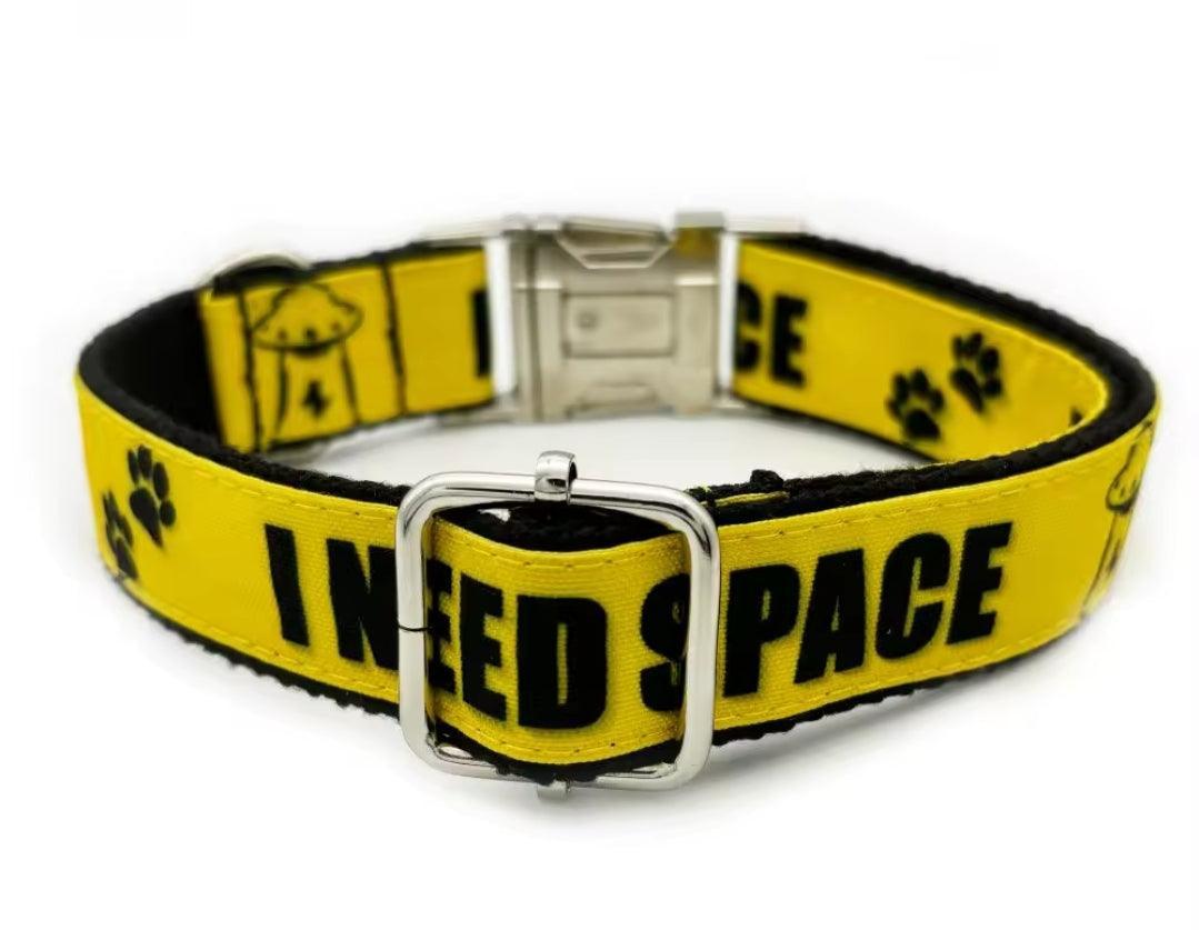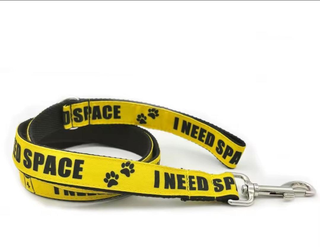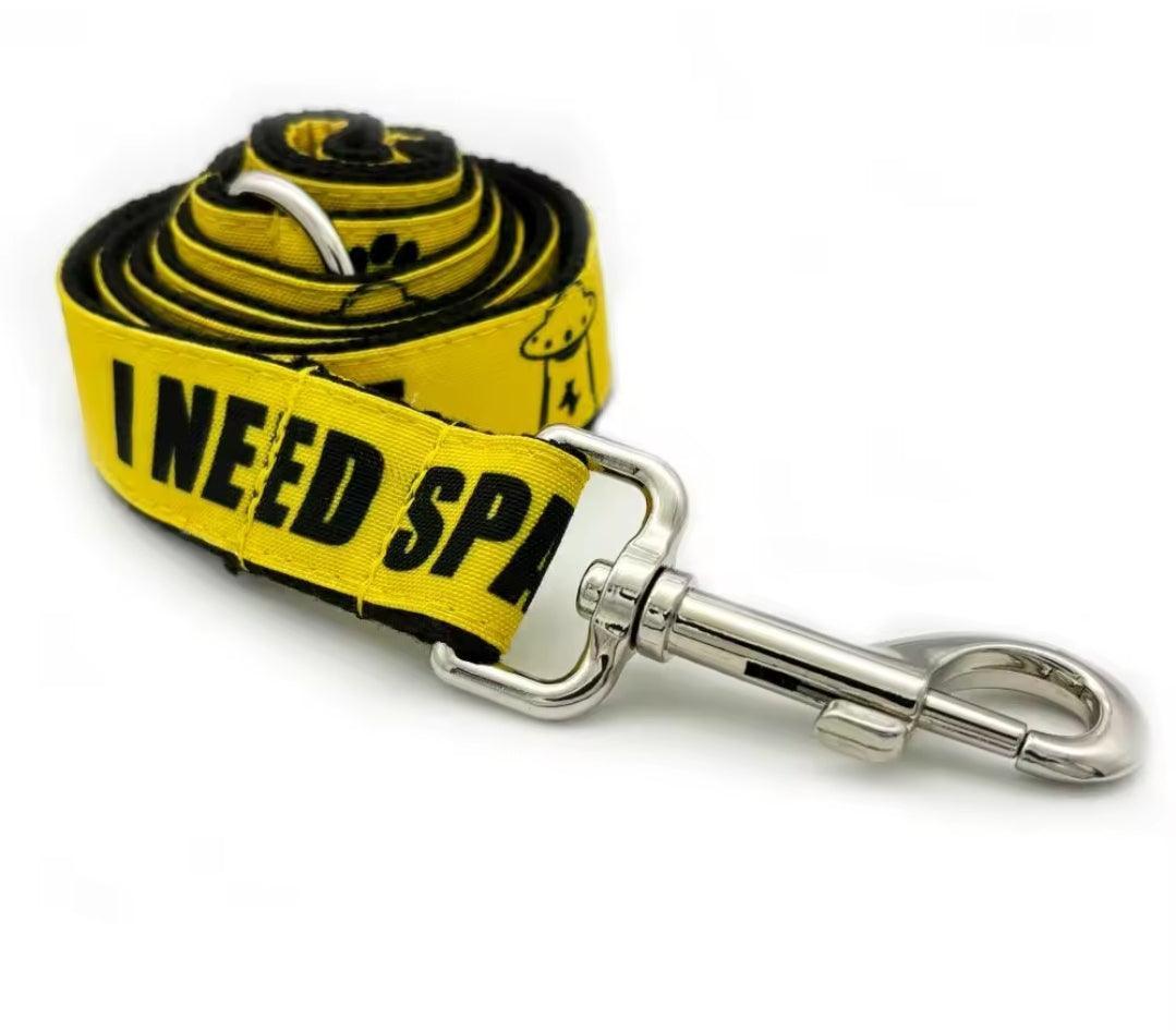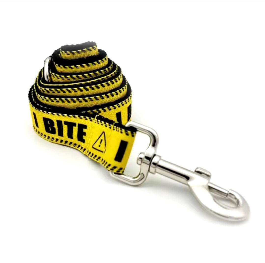 The collar and lead both feature clear, easy-to-read messages: "Do Not Pet," "I Need Space," and "I Bite."