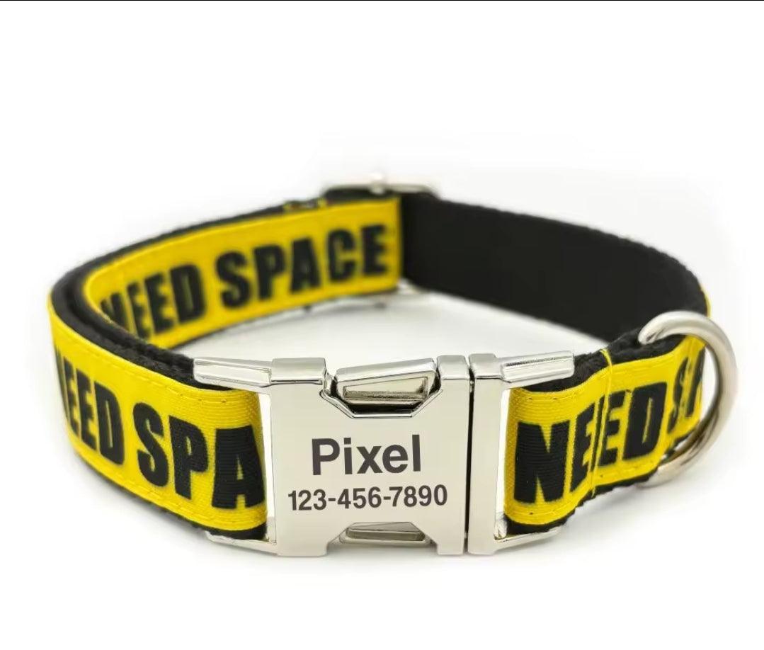 Do Not Pet - I Need Space - I Bite - Collar & Lead Set ( Free Engraving)