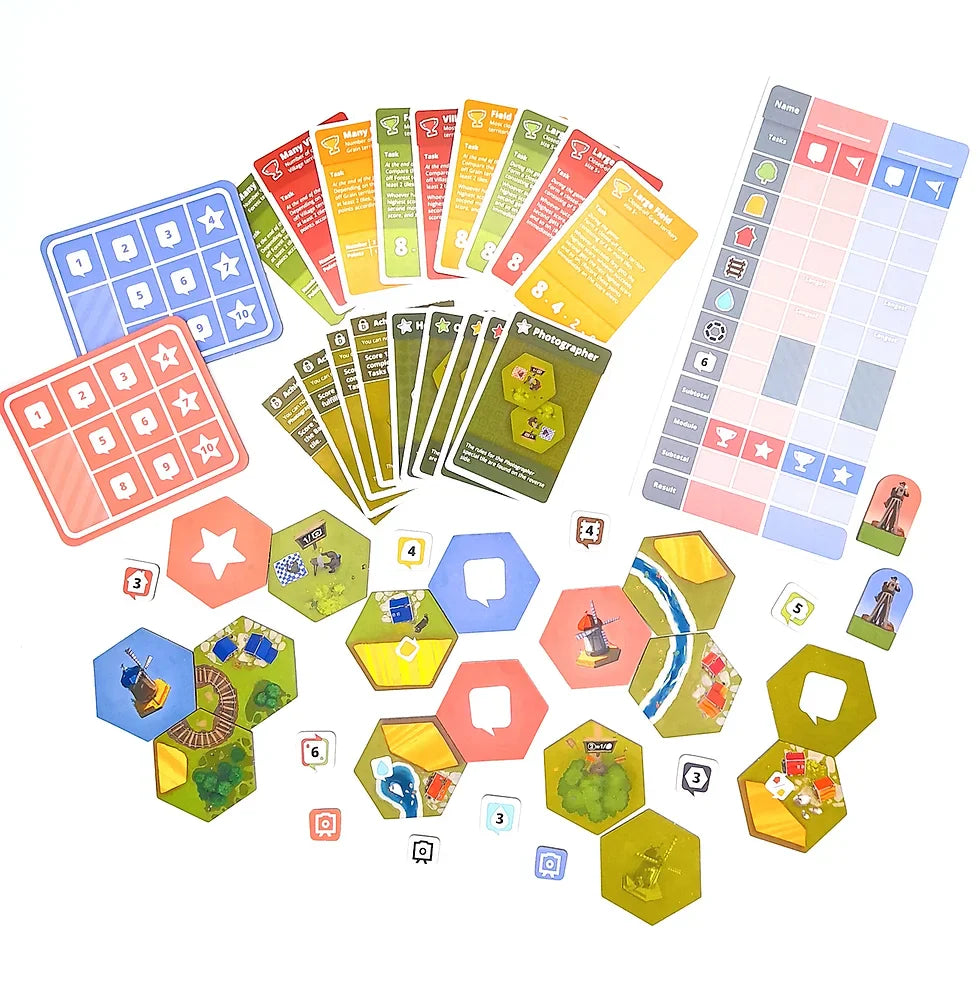 Dorfromantik: The Duel allows two players or two teams to compete. And with two copies even up to four people can play. Who will create the most beautiful world of hexagonal landscapes? Who will be better at fulfilling the villager's orders while also mastering the challenge of new assignments?