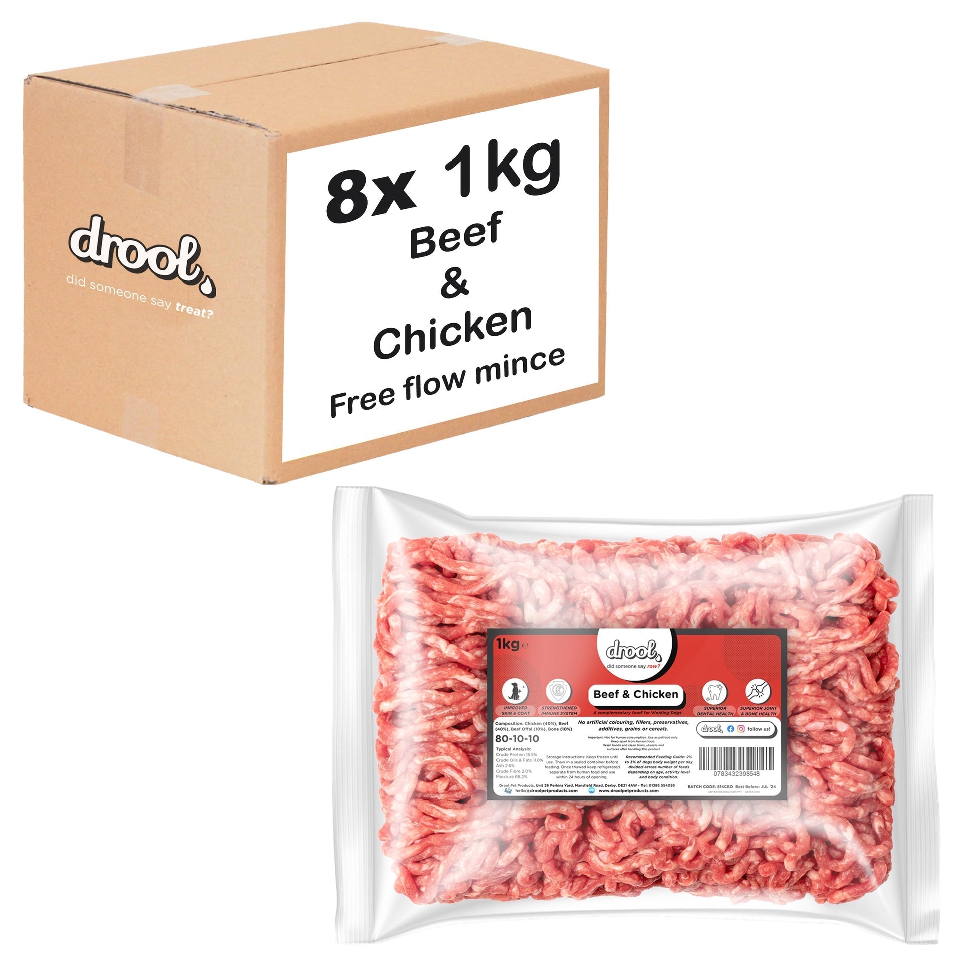 Drool Mince Freeflow Beef & Chicken 1kg - 8 pack box