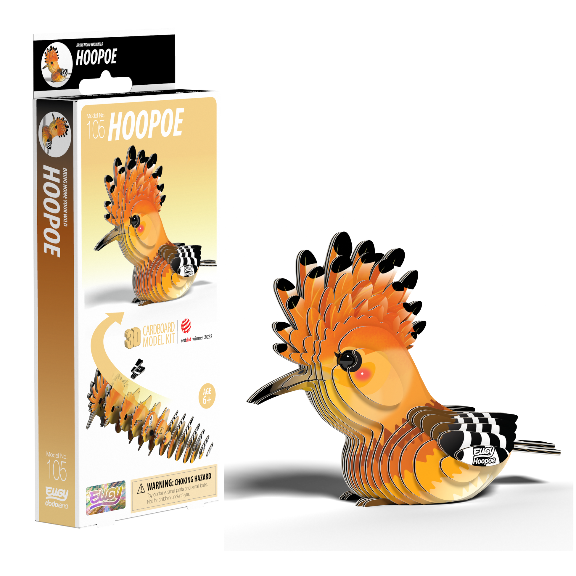 The Eugy Hoopoe is a 3D puzzle made from cardboard, designed for children ages 4 and up.