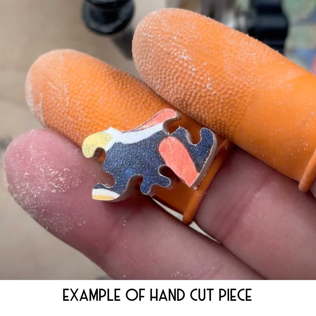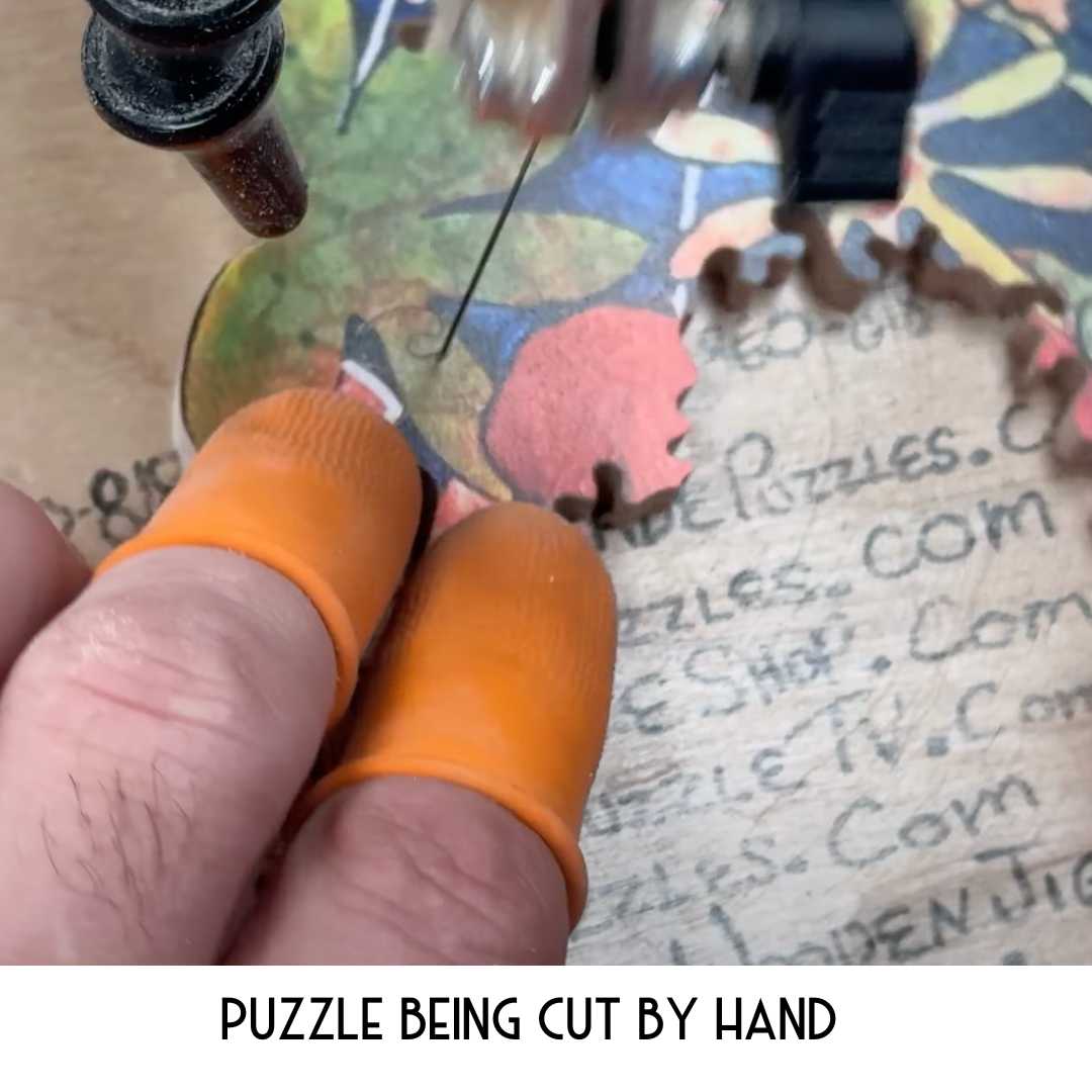 This puzzle was first cut by hand on a scroll saw by master puzzle maker, Mark Cappitella. It was then meticulously hand traced into our software to enable us to produce it in laser cut form - allowing you to enjoy a 'hand cut' puzzle for a fraction of the price!