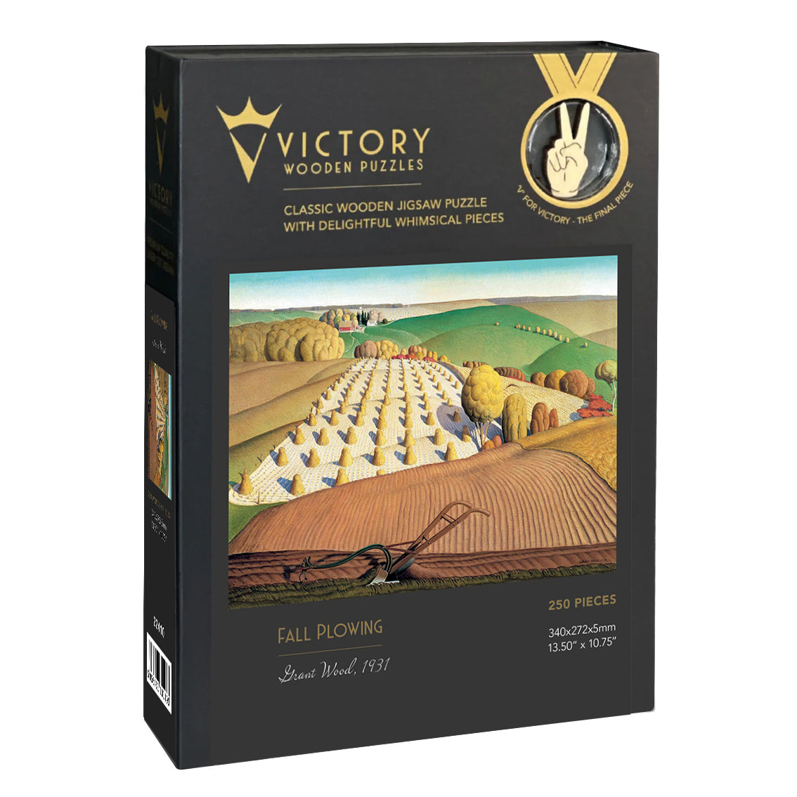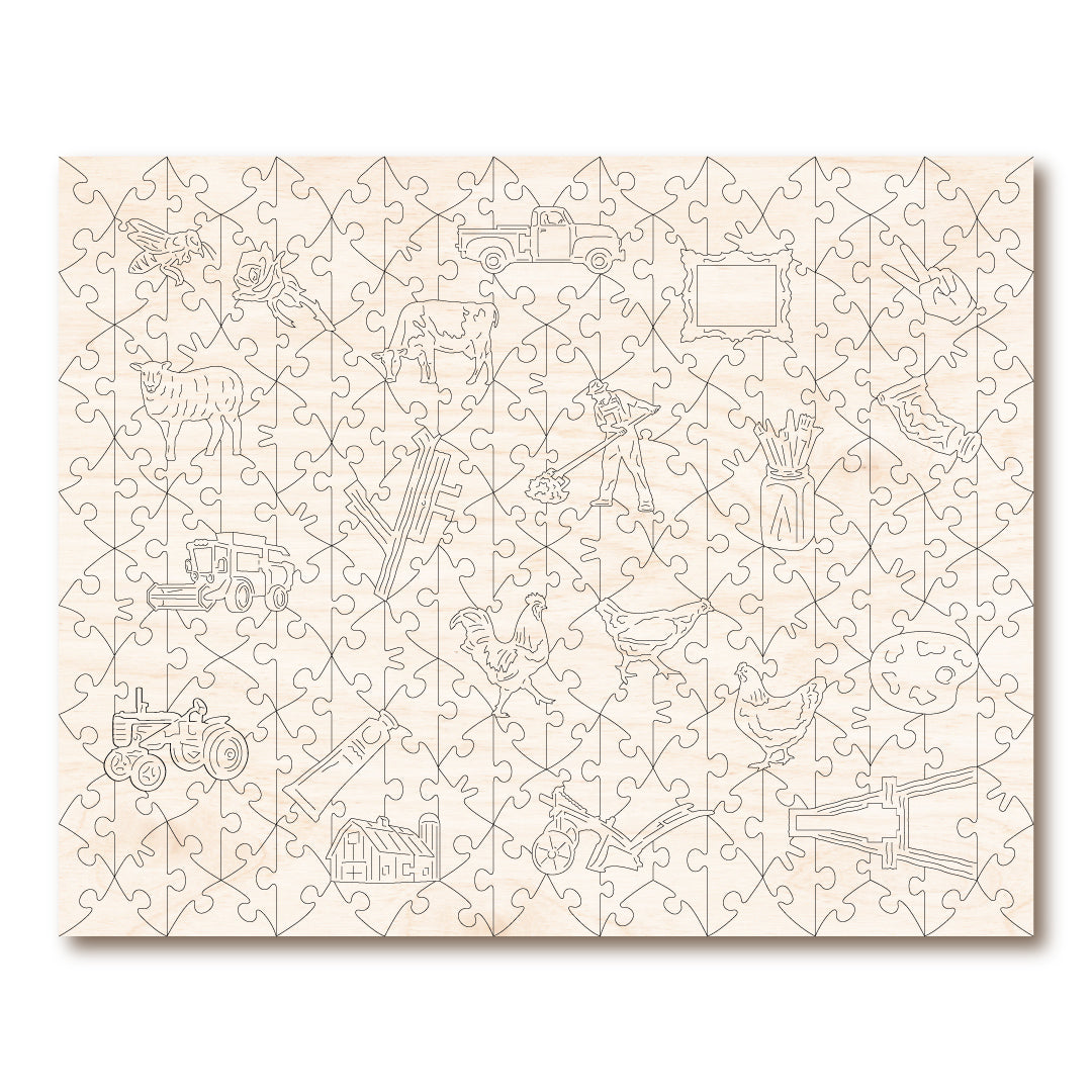 Experience the beauty of the countryside with our Fall Plowing wooden jigsaw. This 250-piece puzzle features irregular and whimsical shaped pieces, adding an element of surprise to your puzzle-solving journey. Immerse yourself in a scene of a plowed field, rolling hills, and hay bales. Perfect for puzzle enthusiasts and nature lovers alike.