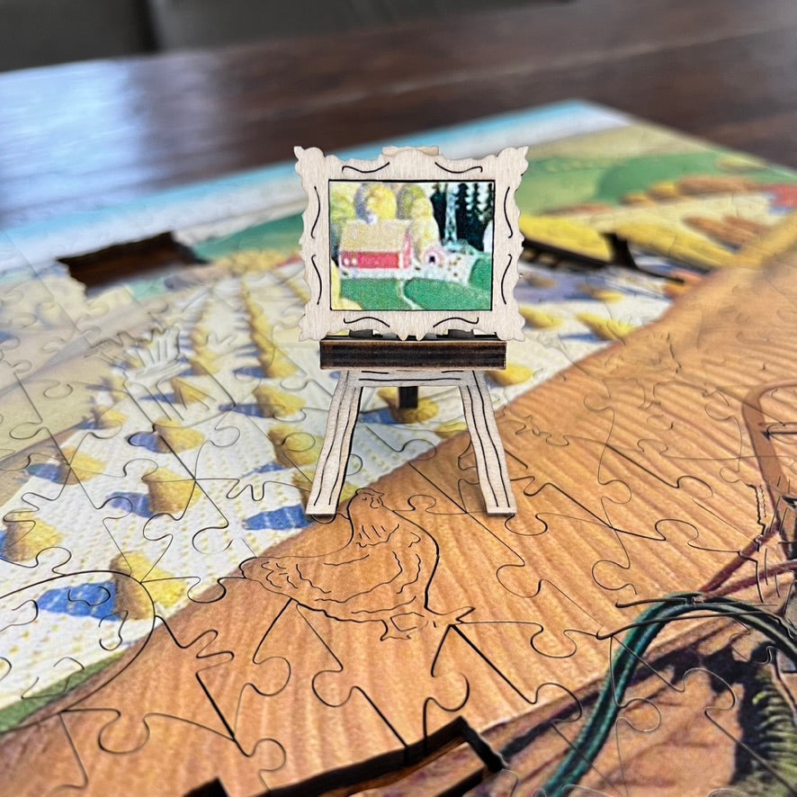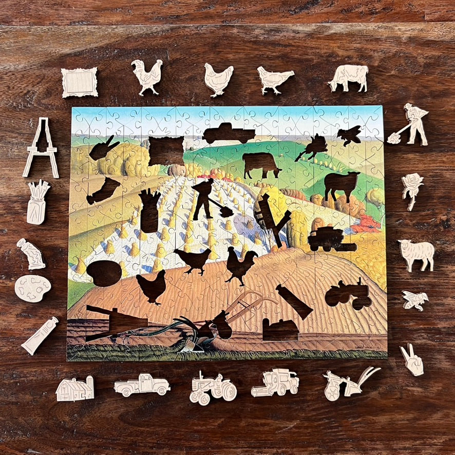 Grant Wood is most famous for his painting 'American Gothic' - you know, the one with the farmer, his daughter and the pitchfork - maybe we'll make that one into a puzzle one day!