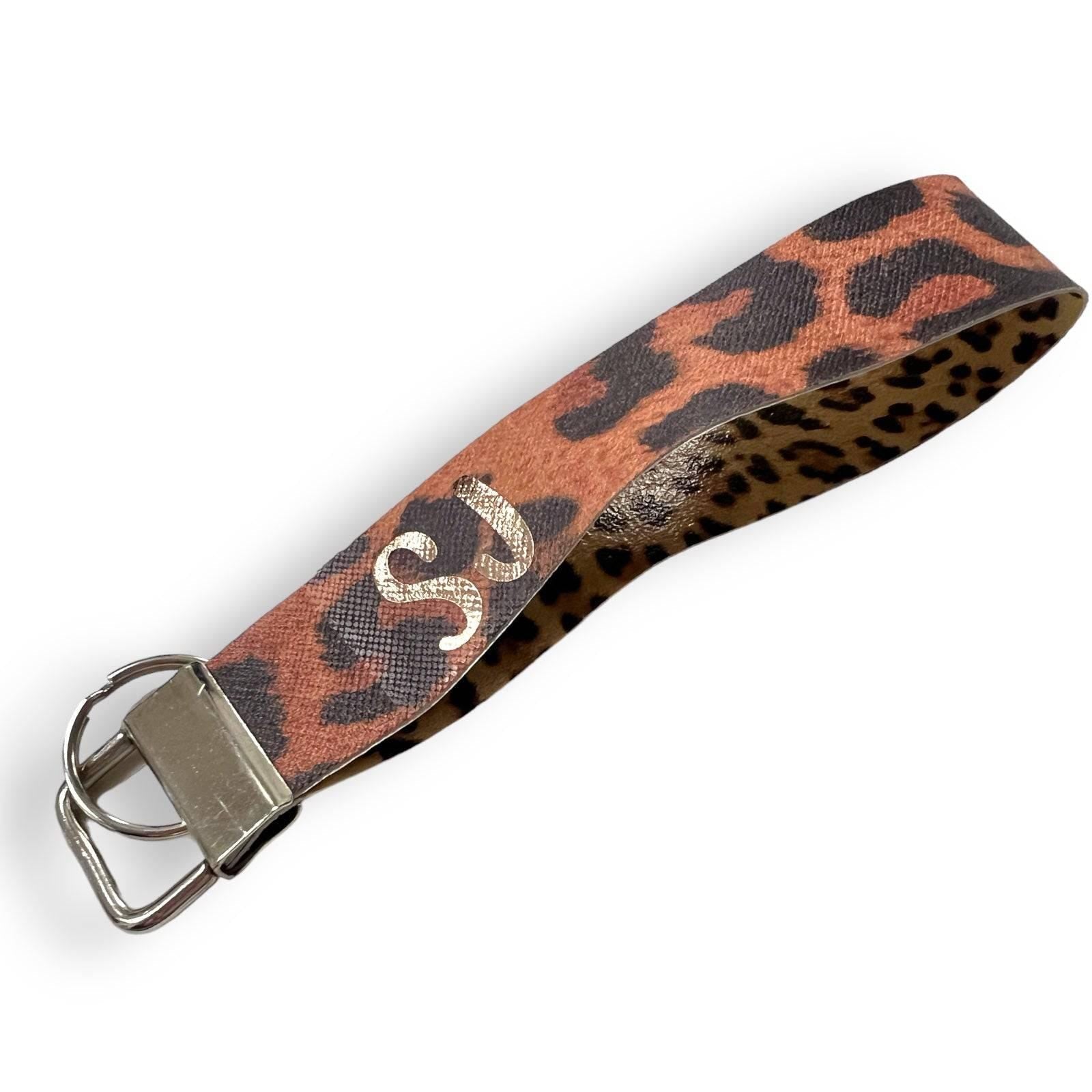 Faux Leather Personalised Initial Wrist Keychain - Leopard Print