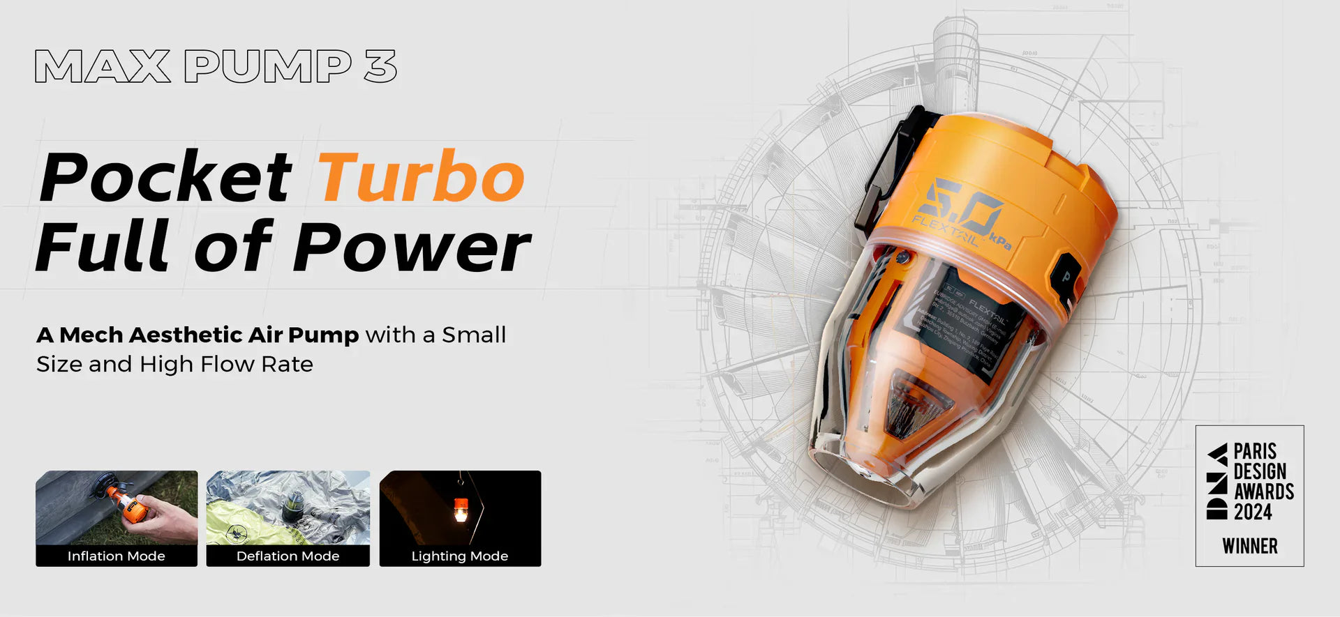 Experience the ultimate combination of power and portability with MAX PUMP 3. Weighing in at just 122g (4.3oz), this rechargeable air pump is perfect for on-the-go use during outdoor activities and travel. Its integrated LED light adds an extra layer of convenience, making it the perfect companion for camping, hiking, fishing, and more. Boasting a powerful 5kPa pressure and 500L/min airflow rate, MAX PUMP 3 quickly inflates a variety of items including camping mats, pool floats, and inflatable toys. No more wasting time and effort with manual inflation – MAX PUMP 3 can even inflate the largest items in just minutes. Plus, its unique lighting design with a fully transparent lampshade adds a touch of modern technology to your outdoor adventures. With 3 levels of brightness and up to 11 hours of battery life, you can fully illuminate your surroundings with MAX PUMP 3. Don't settle for less – choose the