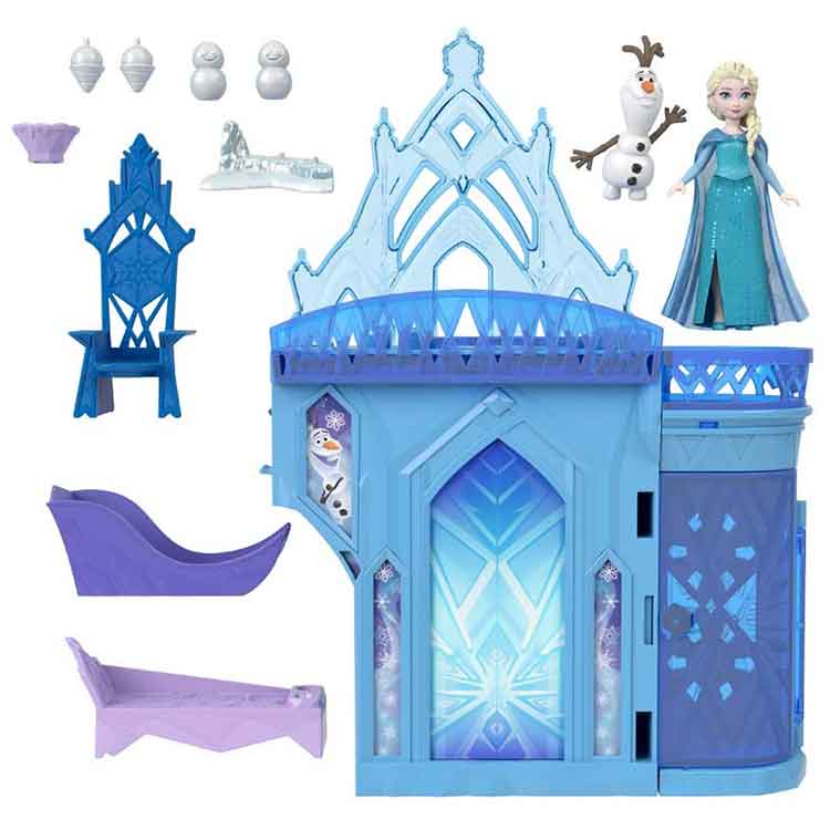 Fans will be delighted with this signature castle playset, inspired by Disney's Frozen movies! A doll house in charming small scale, this Elsa's Ice Palace playset opens to reveal multiple play areas, plus an Elsa doll, Olaf figure, furniture and more. Playset includes a handle for on-the-go play and can connect with other Storytime Stackers™ to expand the kingdom.