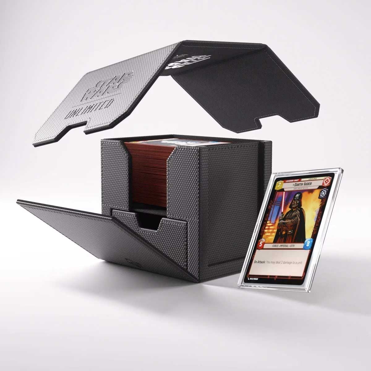 The Deck Pod, an officially licensed premium deck box, is specifically designed for the needs of Star Wars: Unlimited players. The Deck Pod includes a Slide Card Case with additional UV protection for keeping the leader card. Due to the innovative placement of that card, the stored deck can be easily identified without opening the box. The Slide Card Case can also be detached and used during gameplay.