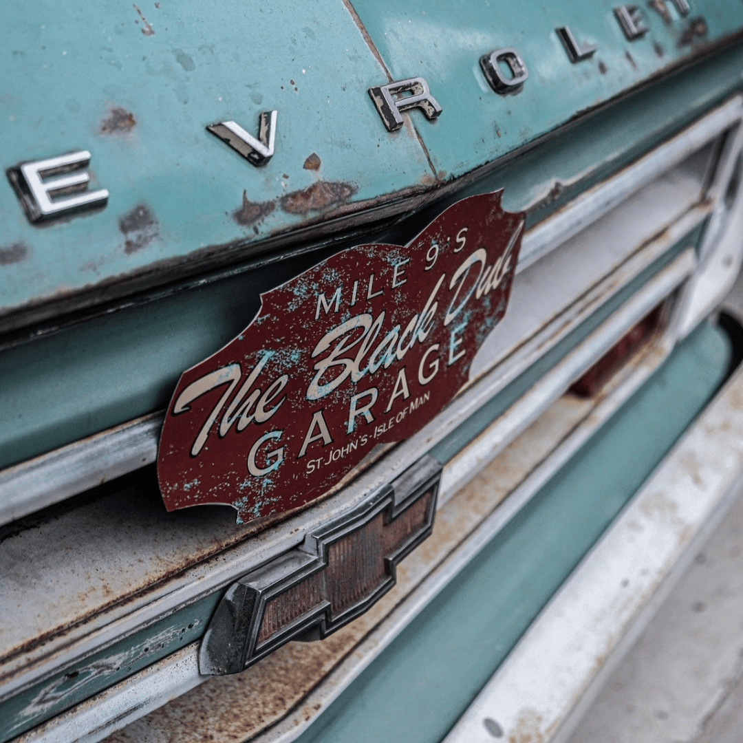 This Garage Cap, features The Black Dub garage logo, in its recognisable Red. Fitted on a peppermint blue and beige cap. This cap took inspiration from the Dubs’ C10 Chevy Pickup Truck with the peppermint and beige paint job. A truly, awesome unique machine with an equally unique and awesome cap!