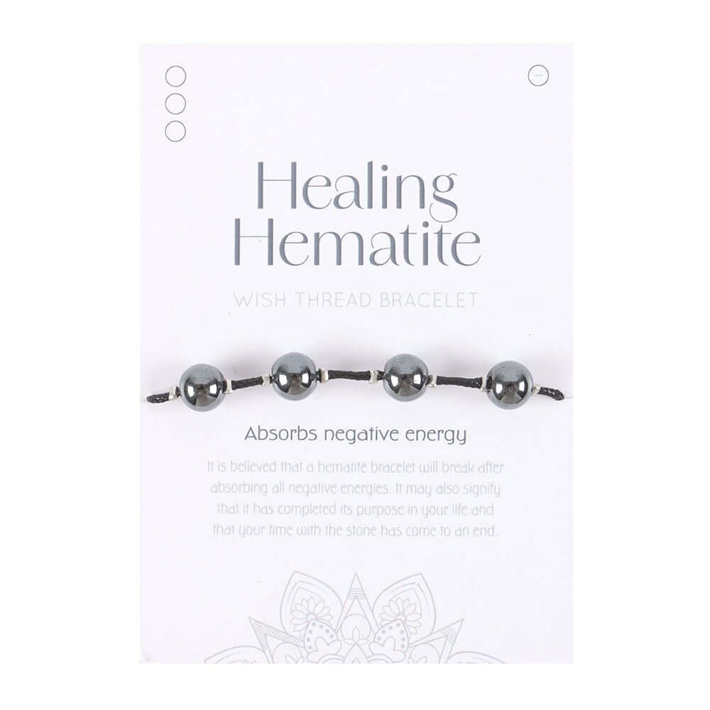 Harness positive energy with this healing hematite bracelet. Featuring hematite gemstones on a black thread bracelet, it is said to release negative energy once it has reached its capacity, making it an empowering accessory for those seeking protection and optimism. Comes with a matching backing card. Part of the Healing Hematite collection of hematite crystal accessories.