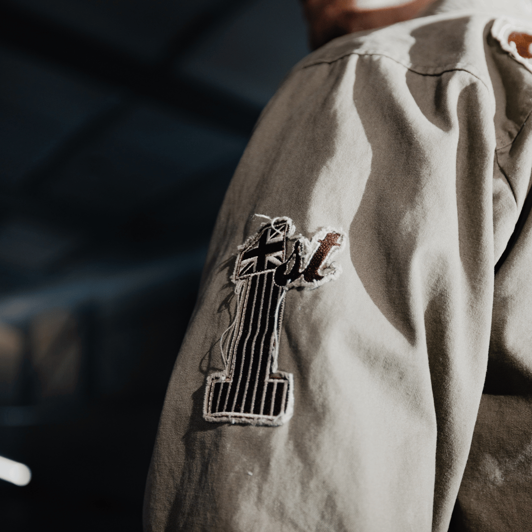 Designed with inspiration from classic workwear and vintage racing outerwear, the shacket features the Flattrack logo on both the front and back, representing the heart of this collection. We’ve paid homage to hard-working, race-ready gear by incorporating collection patches on both arms, including a chequered flag, our signature “Glory Favours the Brave” slogan, the Union Jack, and the No.1 logo—one of our bestsellers.