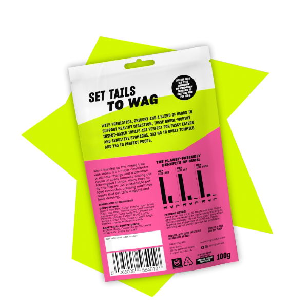 Hypoallergenic dog treats made with clean insect protein, prebiotics, parsley, and sage. Designed to support gut health and perfect for sensitive tummies. Novel insect protein is easily digestible and with the support of prebiotics these treats are great for dogs with sensitive tummies.