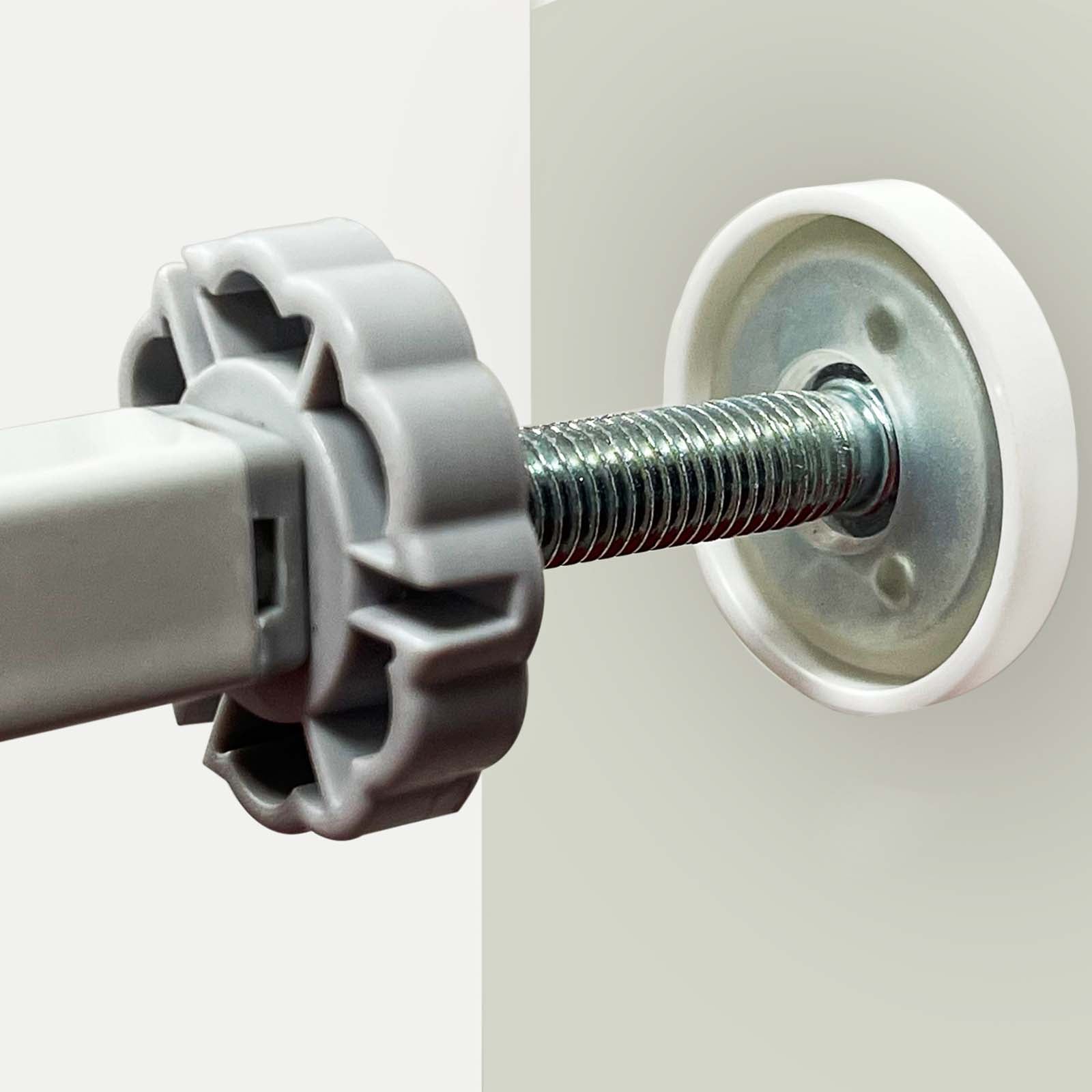 - Product Specification: Dimensions/Size (without fixing/screws): Gate Width 70cm x Gate Height 76cm (approx.), Baby Safety Gate adjusts to fit openings from 75 cm to 85 cm, Color: White & Grey